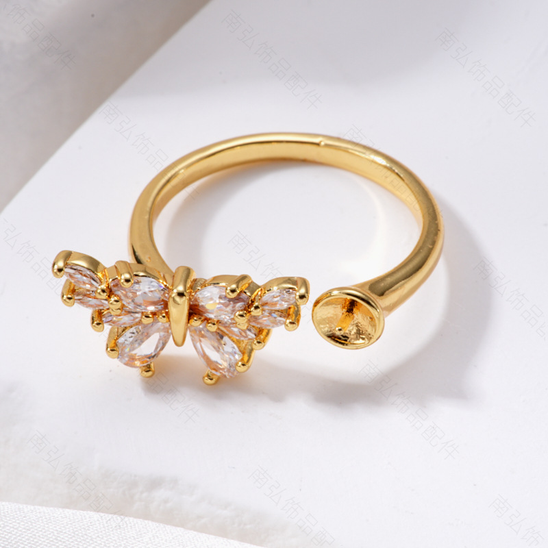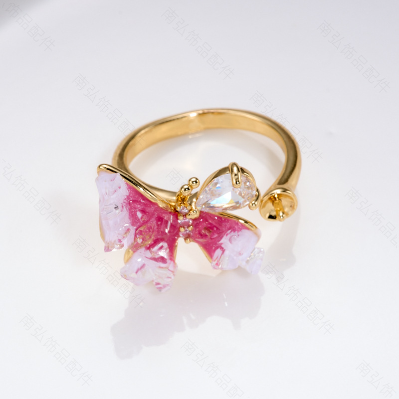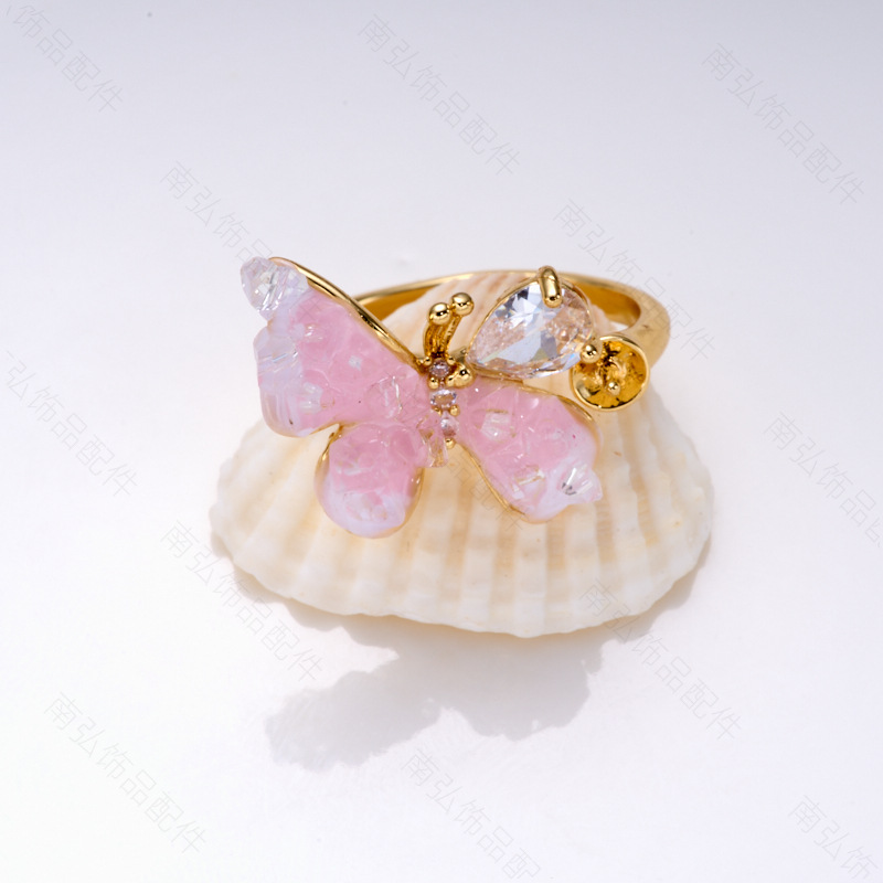 #1764 18k gold pink and white butterfly ring