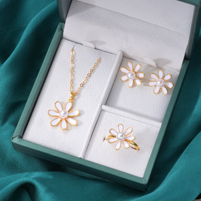 #1773 18k gold abalone shell flower ring