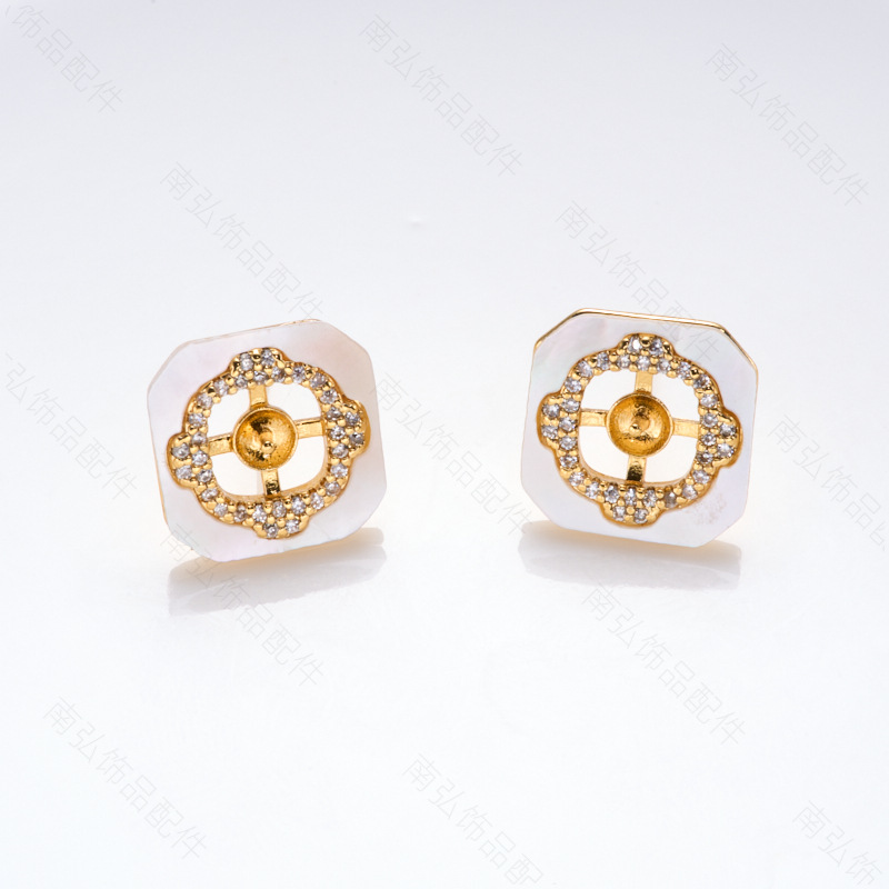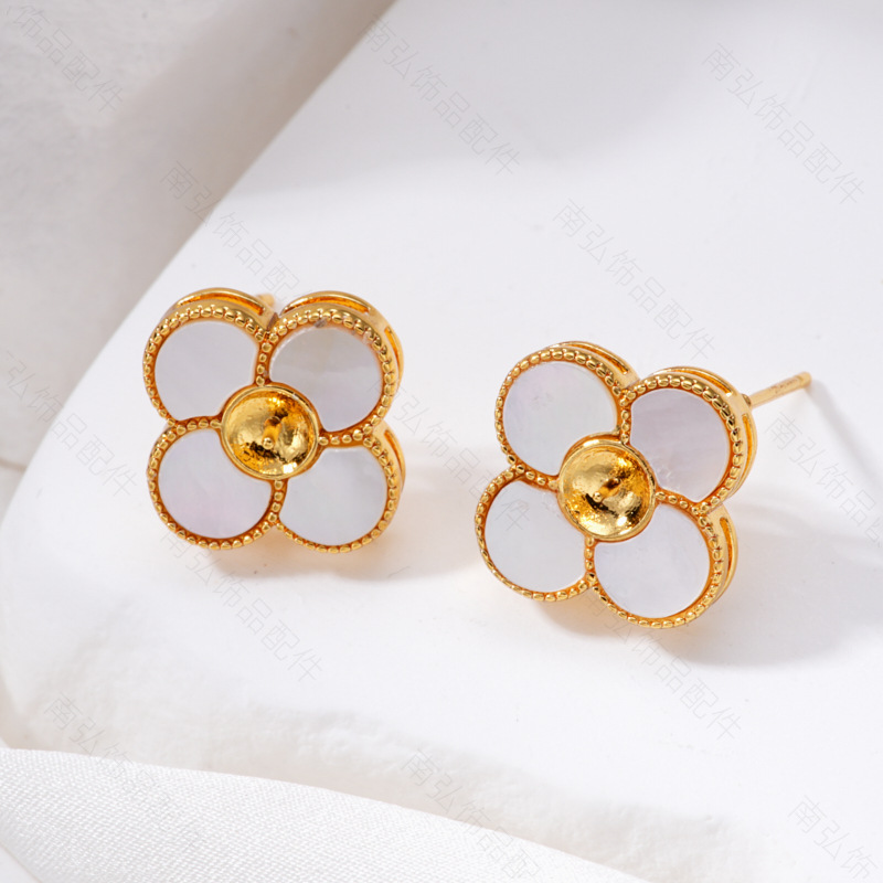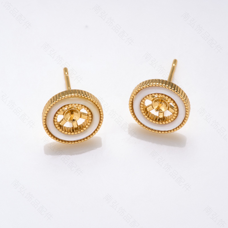 #1771 18k golden, round shells ear studs empty holder pairs