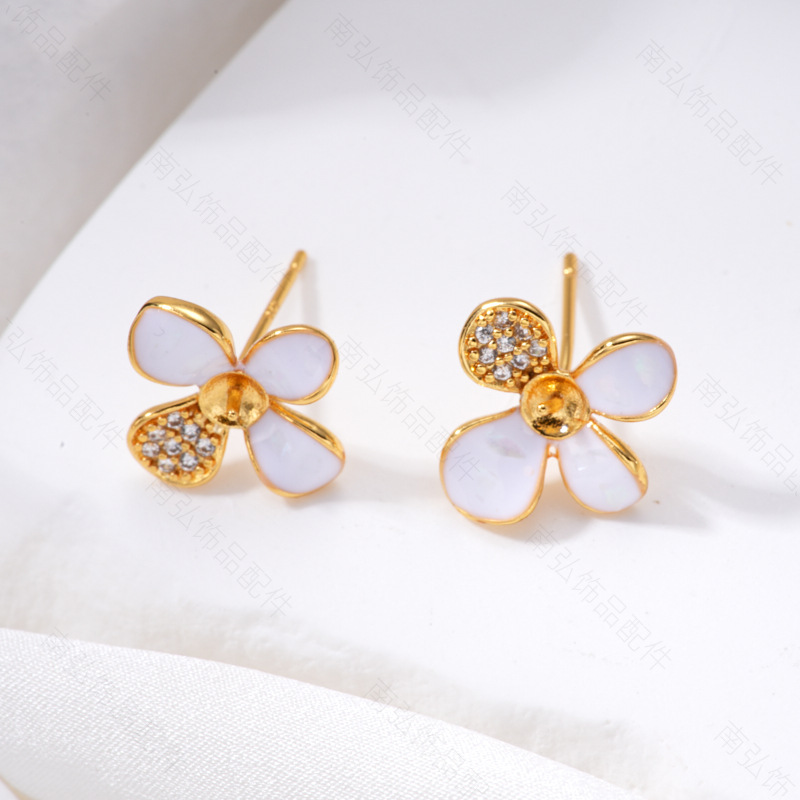 #1803 18k gold four-petal flower stud earrings