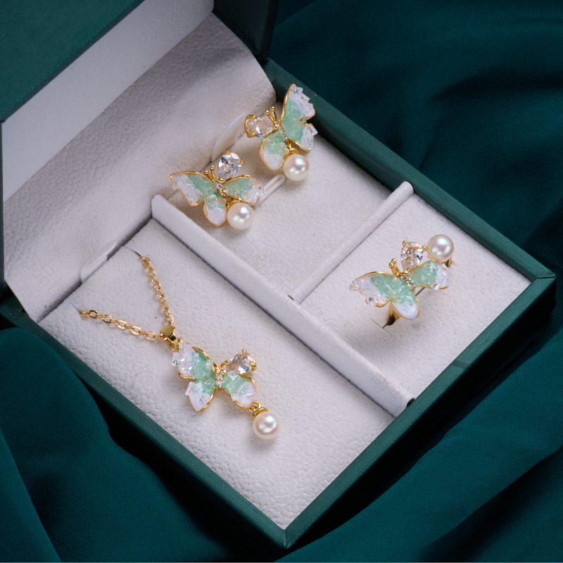 #1761 18k gold green white butterfly ring