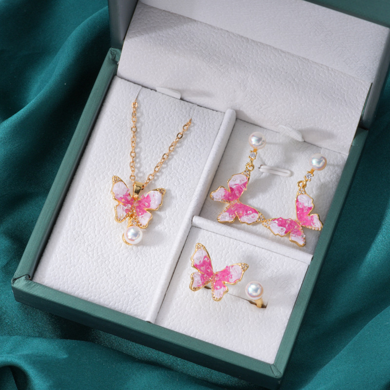 #1765 18k gold pink white butterfly studs pairs