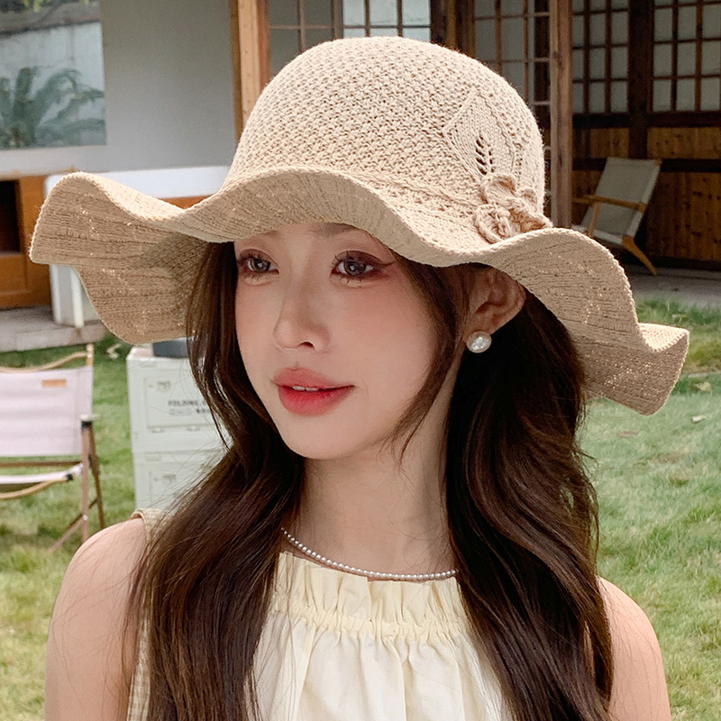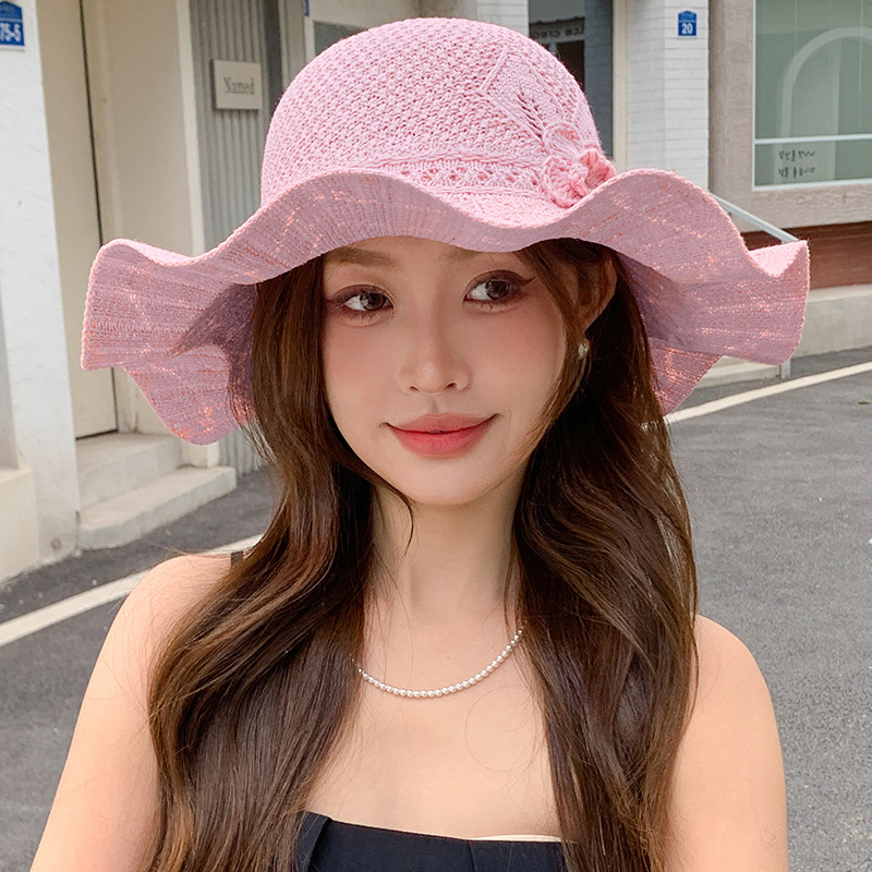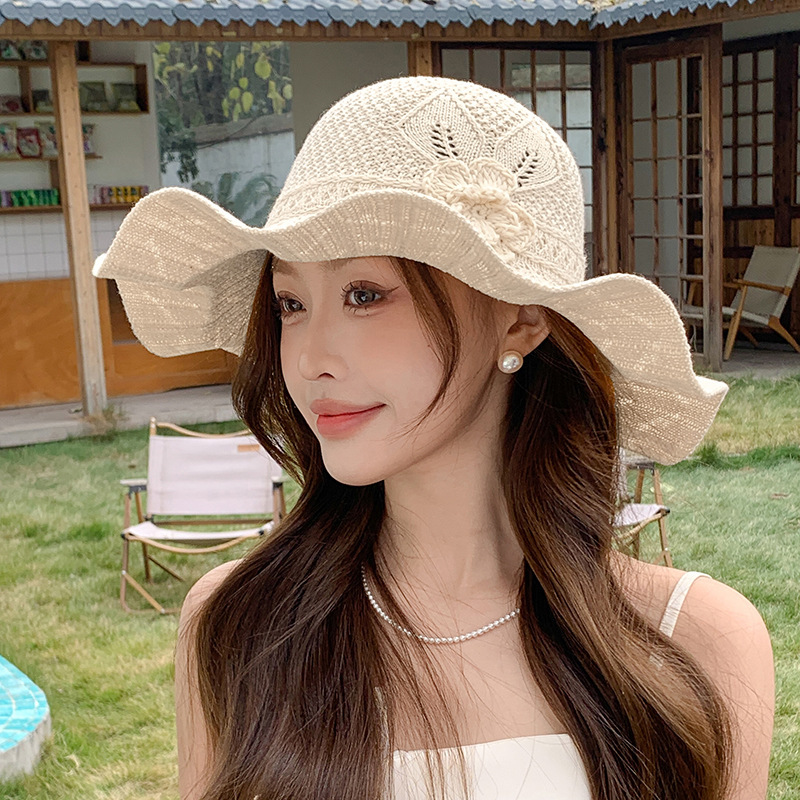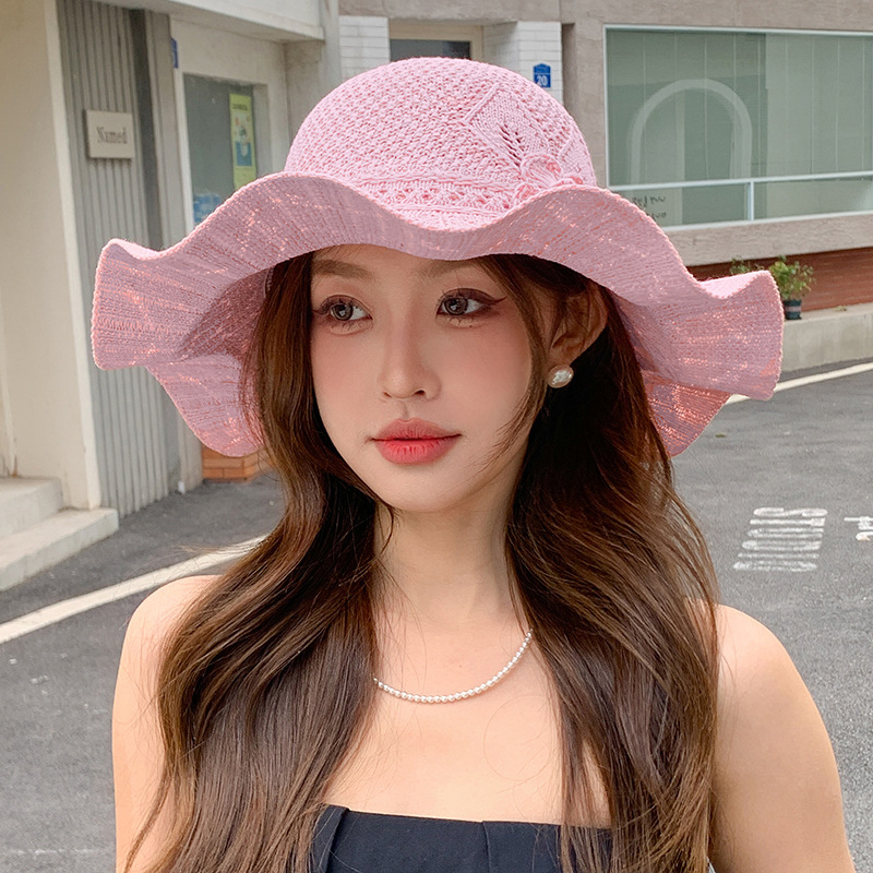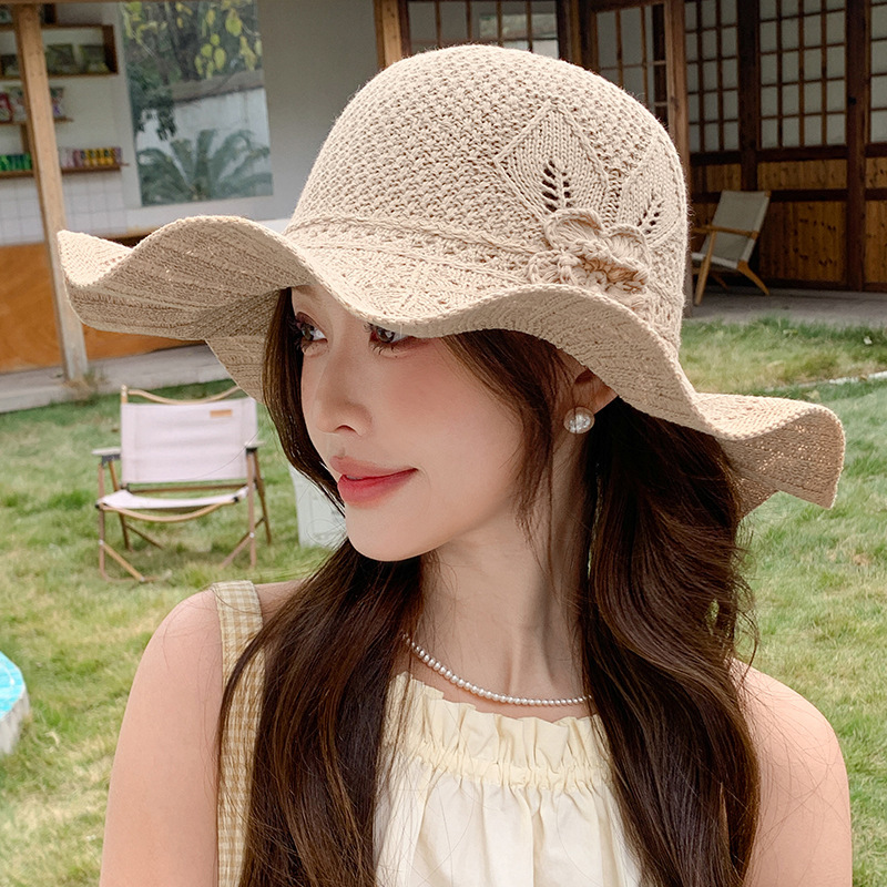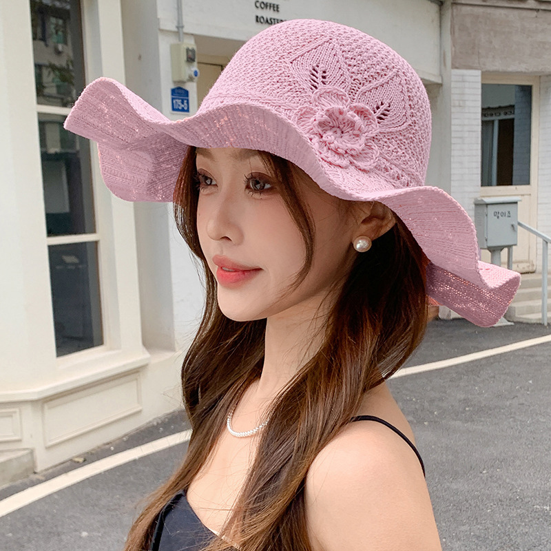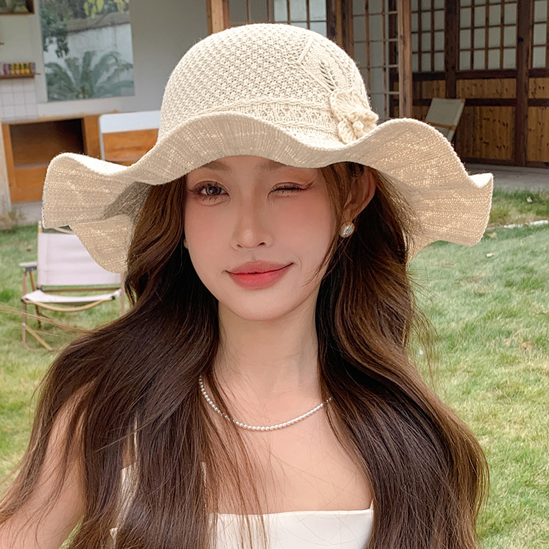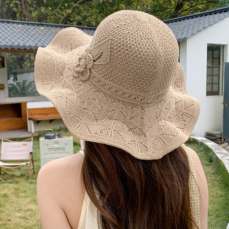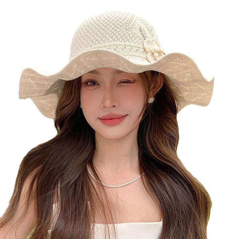 korean ins knitted hat breathable outdoor travel ruffled big brim sun hat fashion all-match sun hat 中文版
