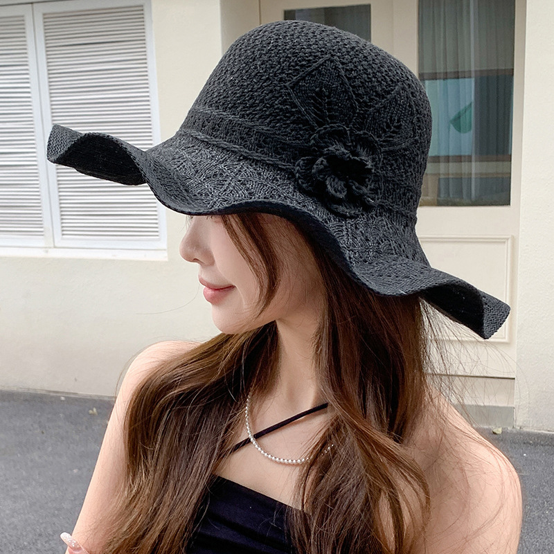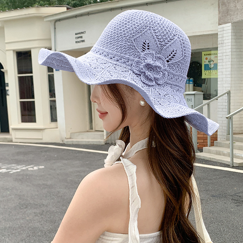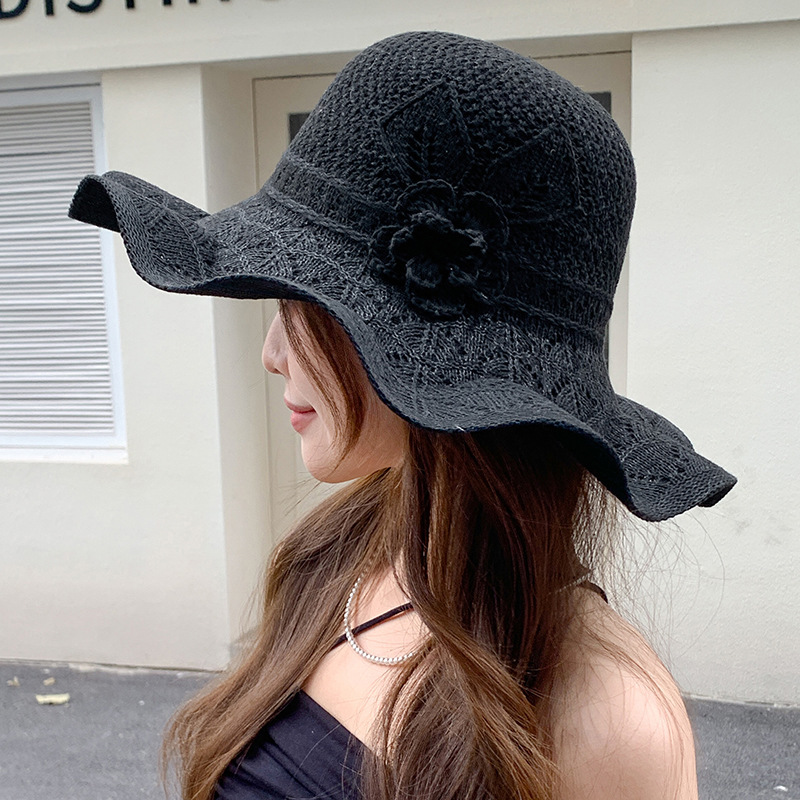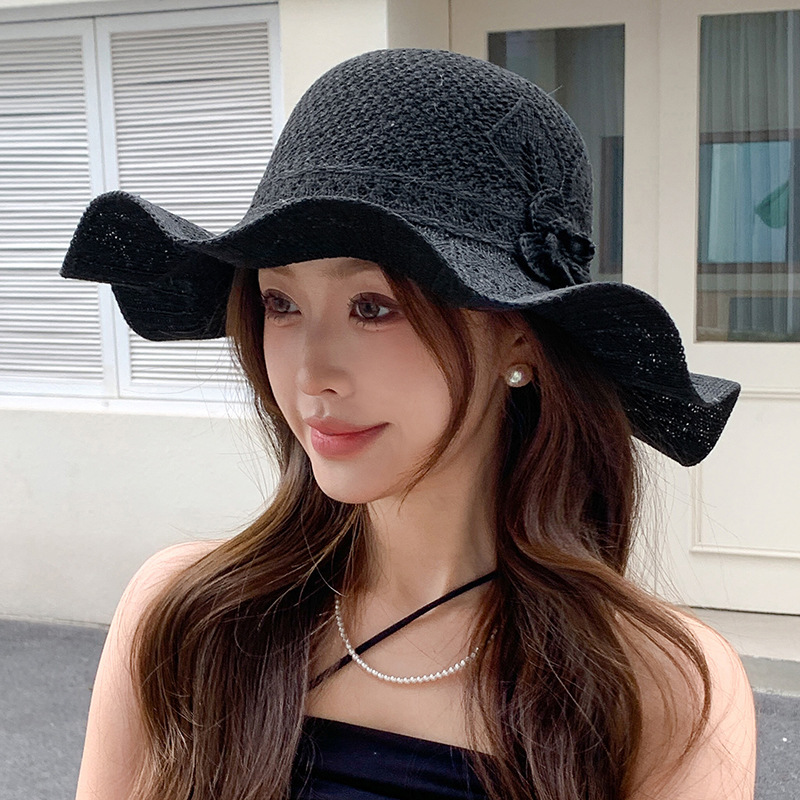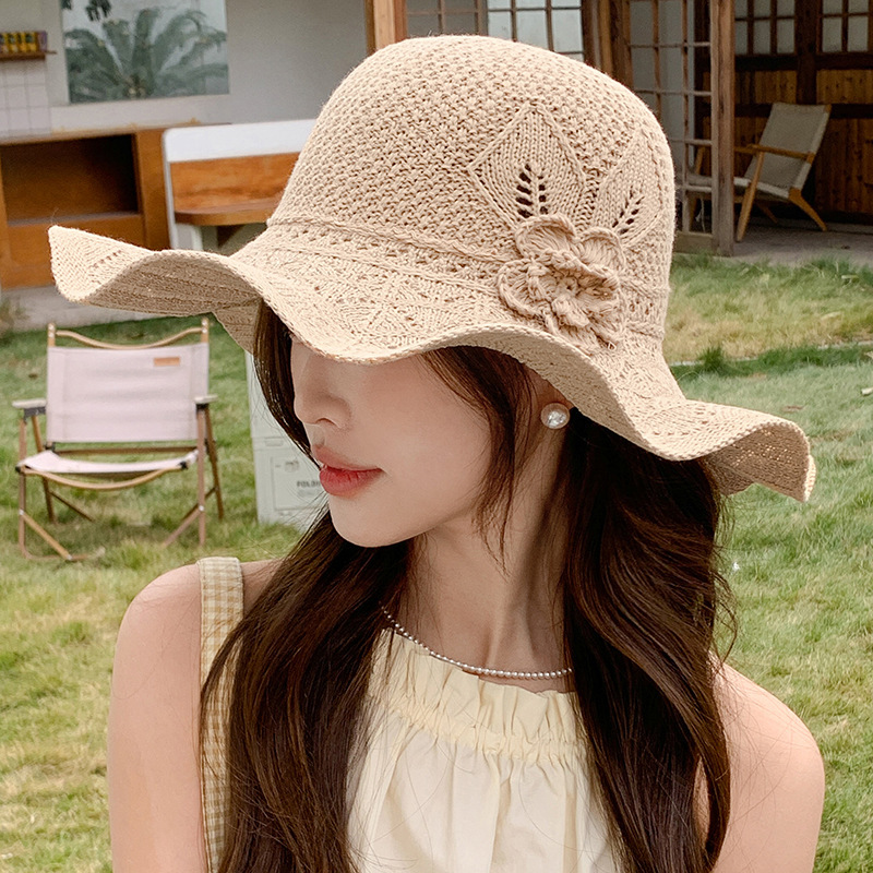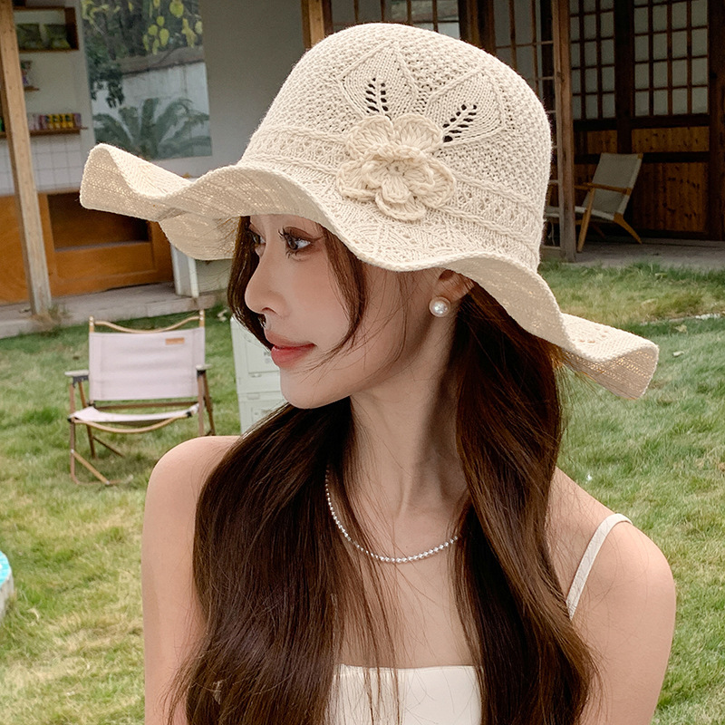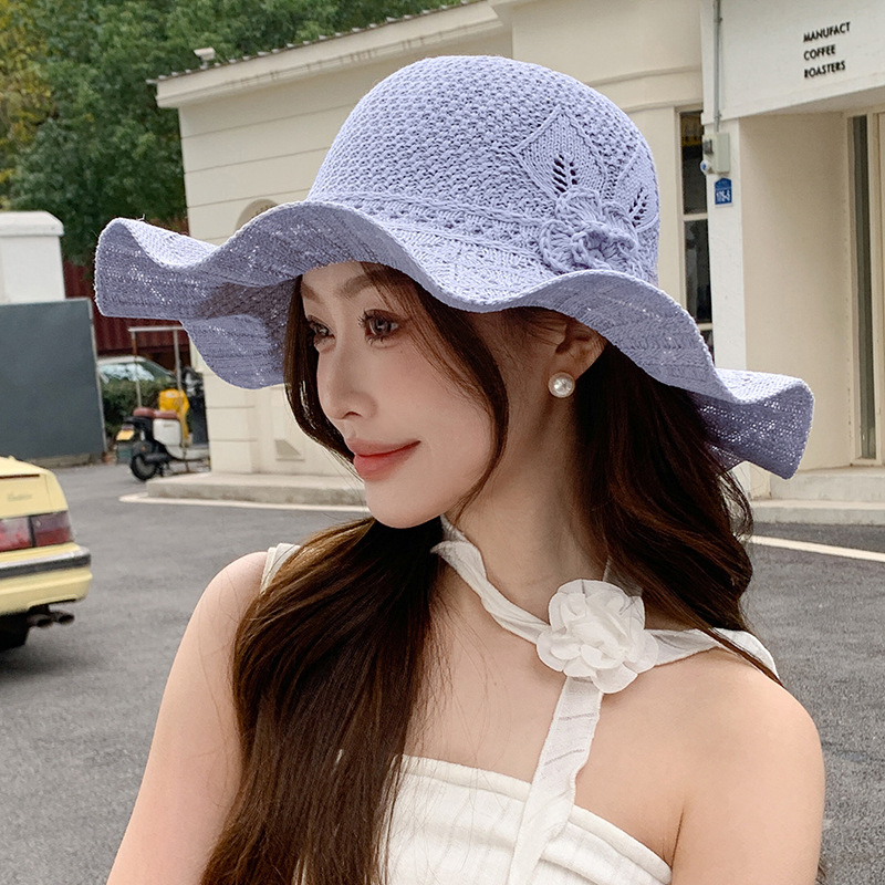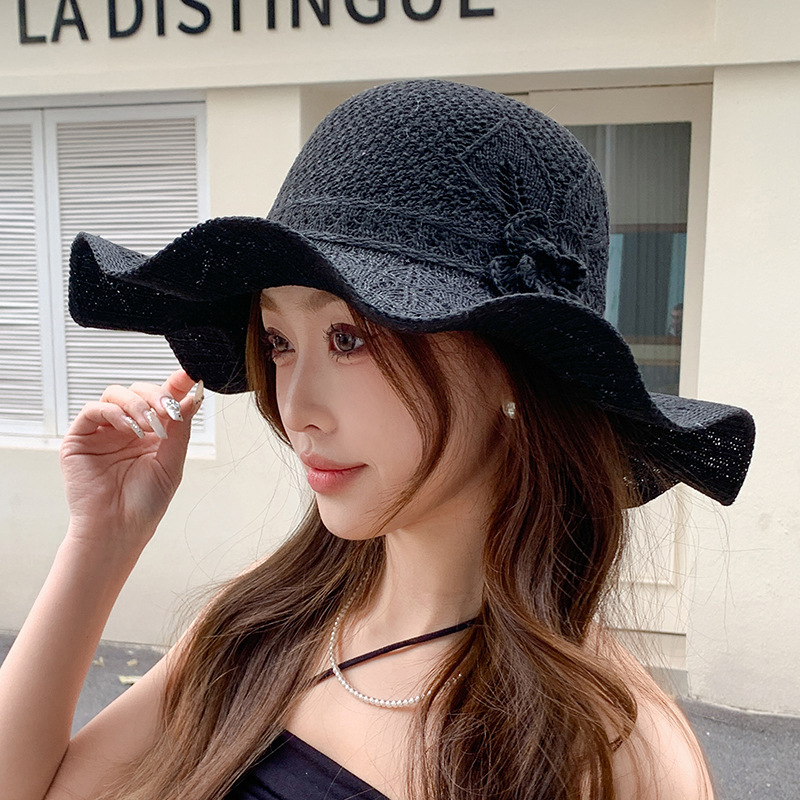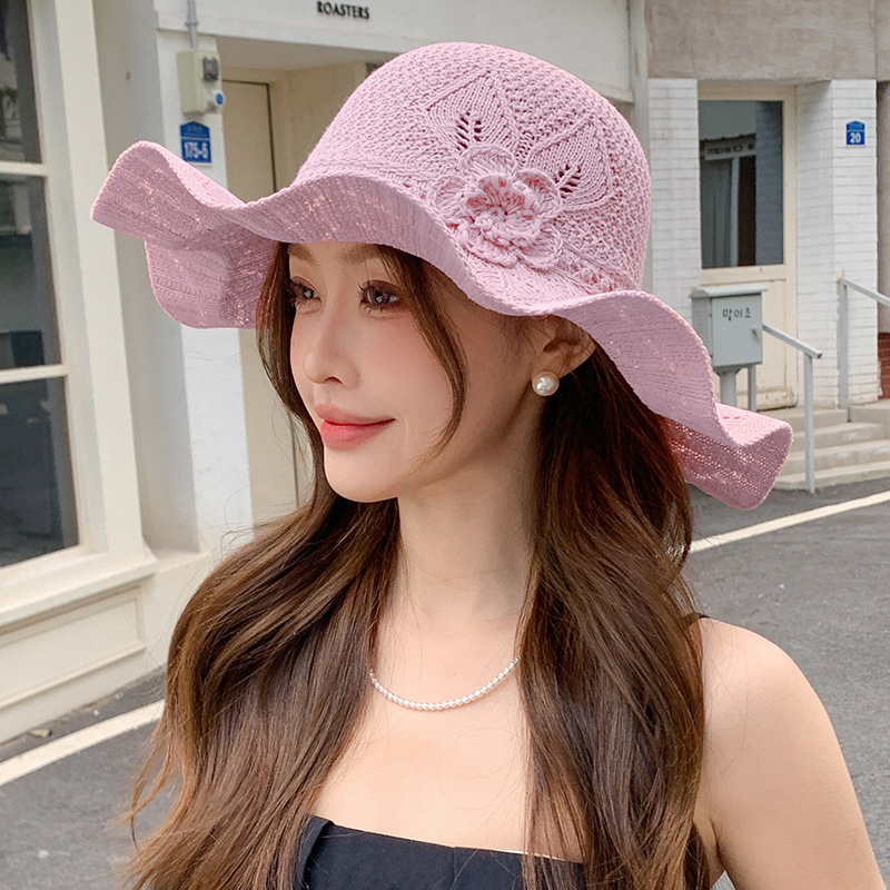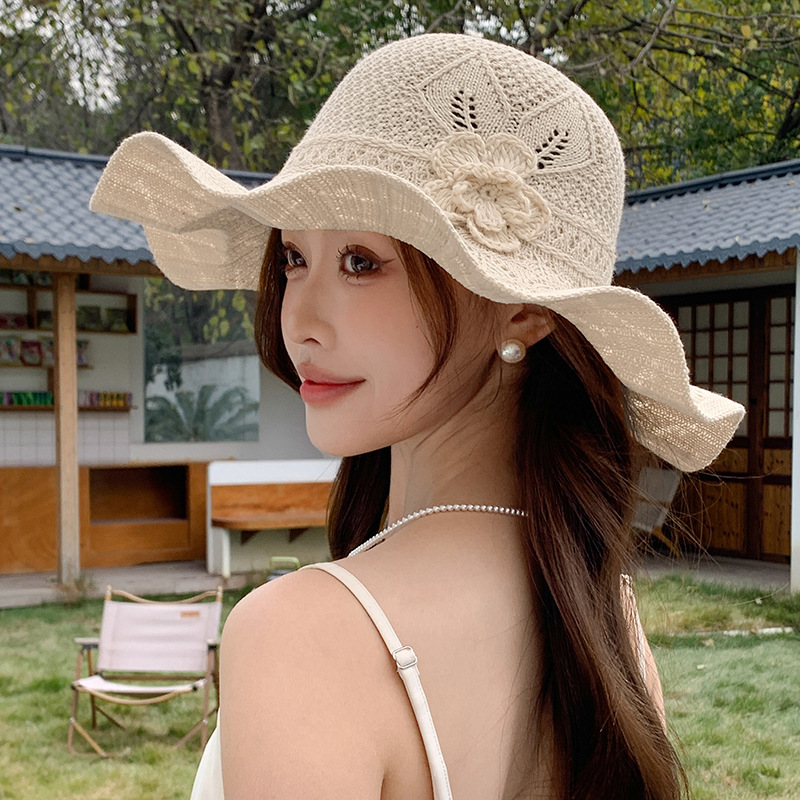 korean ins knitted hat breathable outdoor travel ruffled big brim sun hat fashion all-match sun hat 中文版