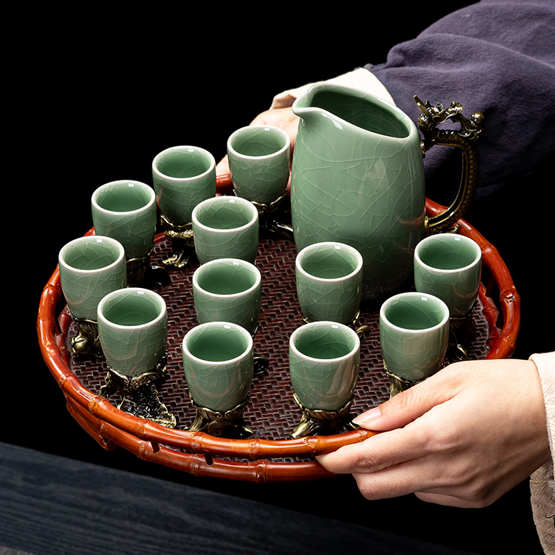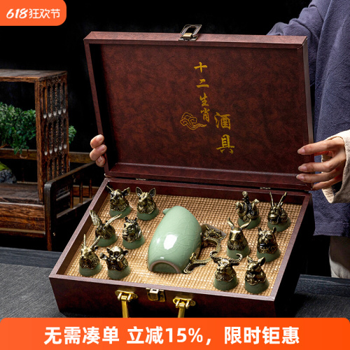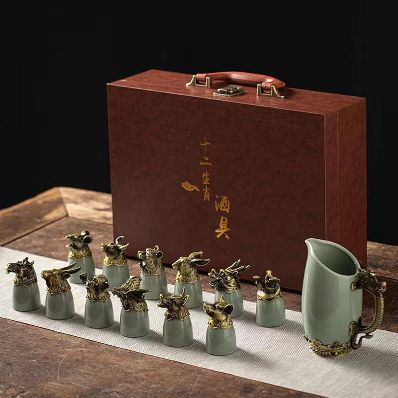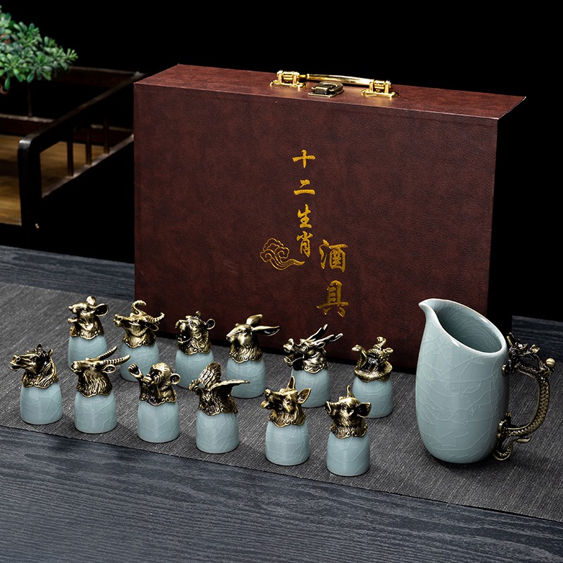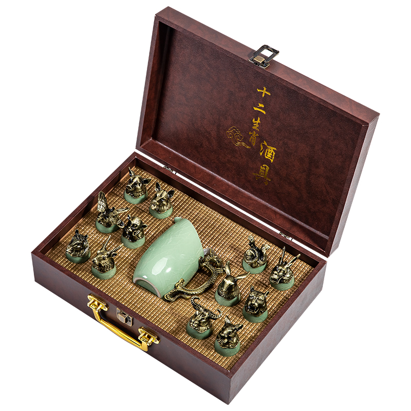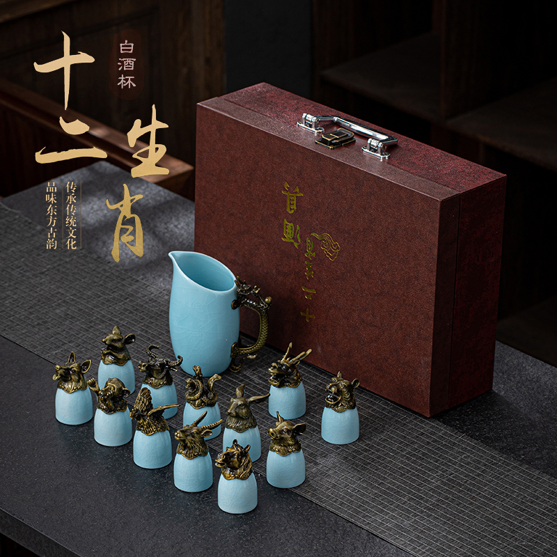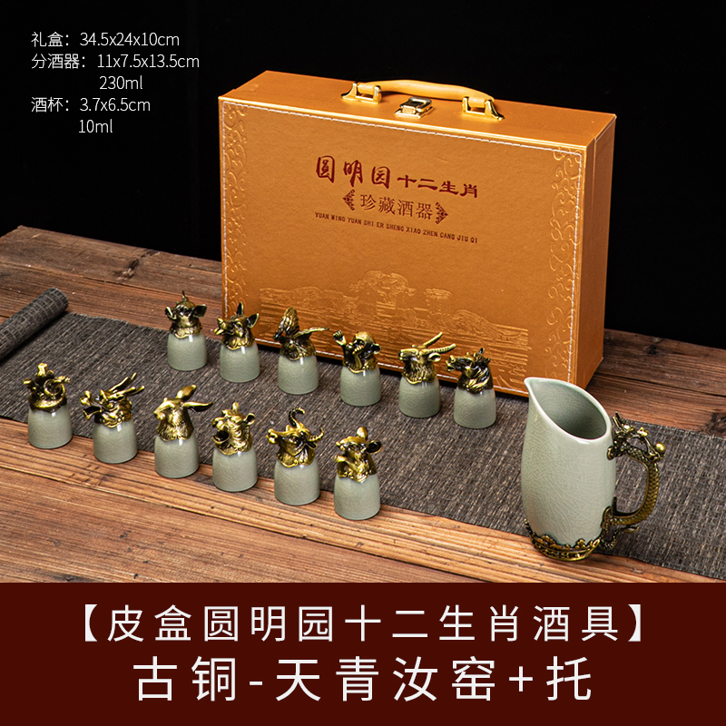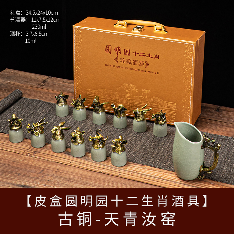 yuanmingyuan (leather box yuanmingyuan twelve zodiac wine set) bronze-azure ru ware [more favorable for the whole box]]