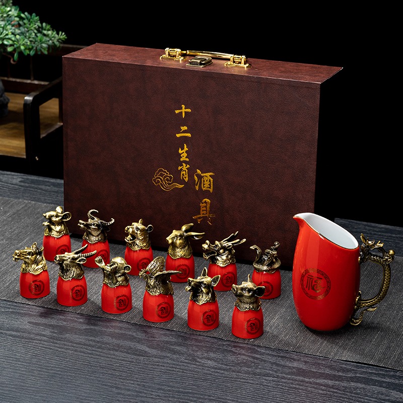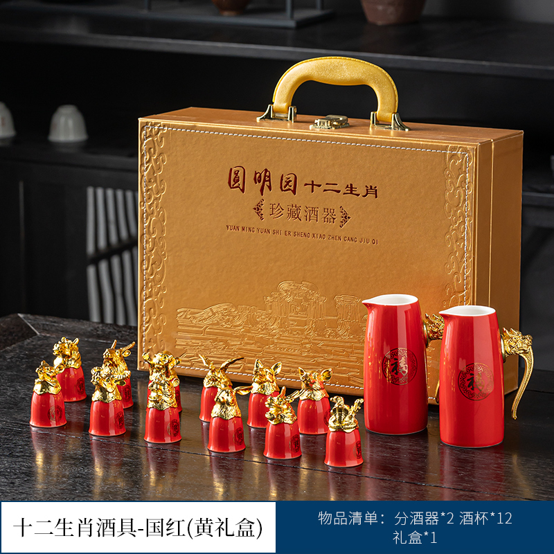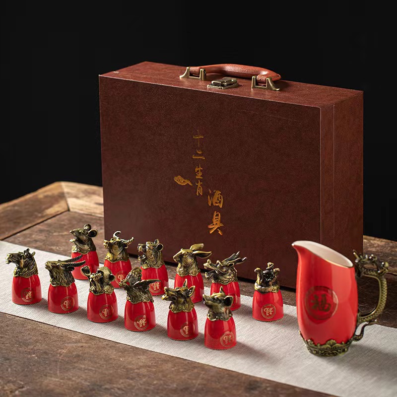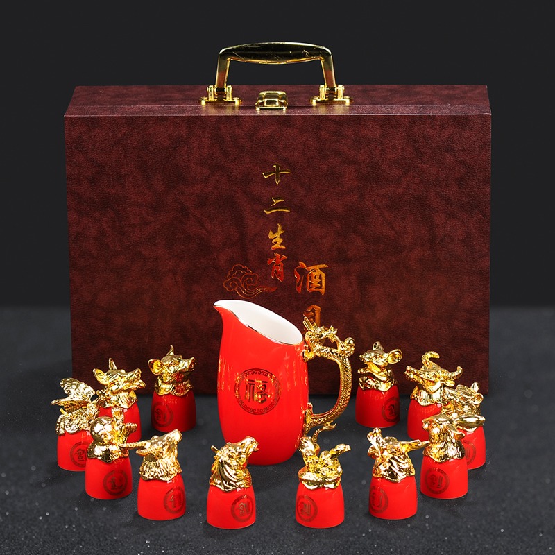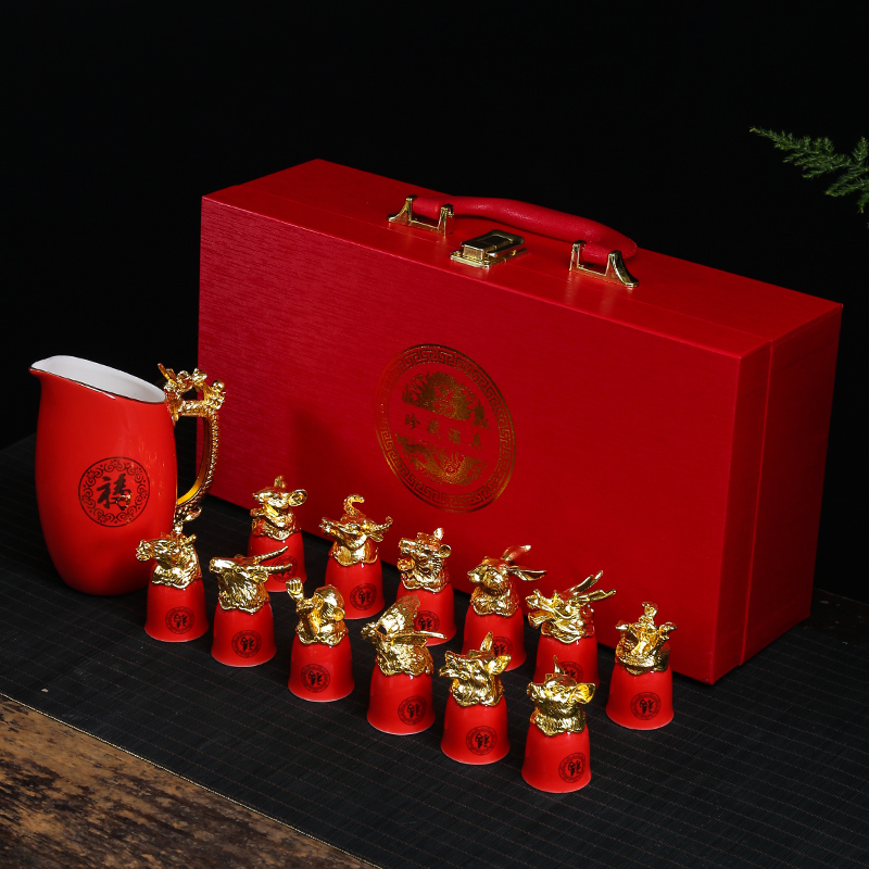 chinese red 12 zodiac wine set gift box suit [more favorable for the whole box]]