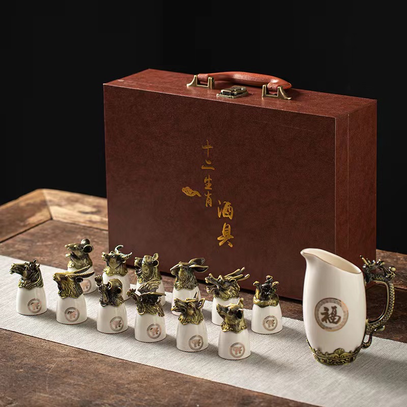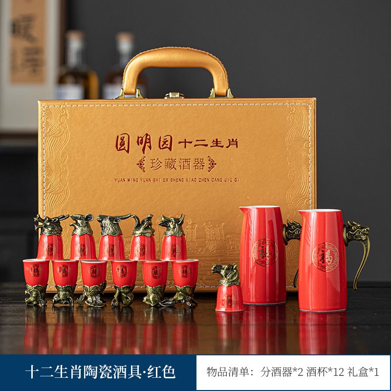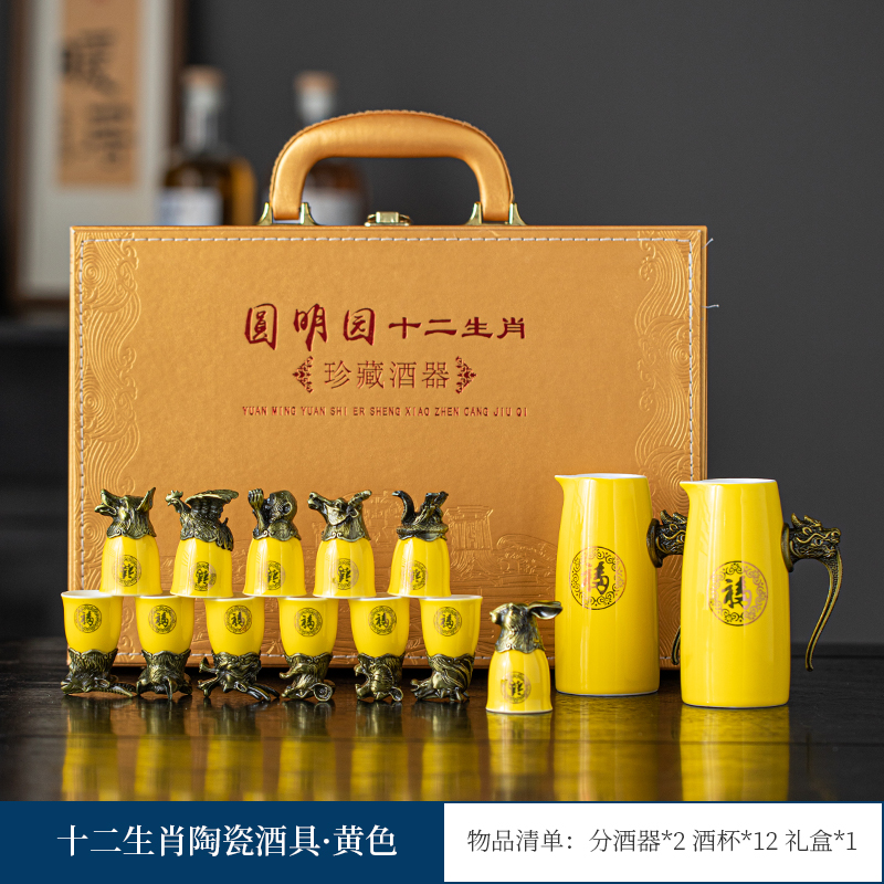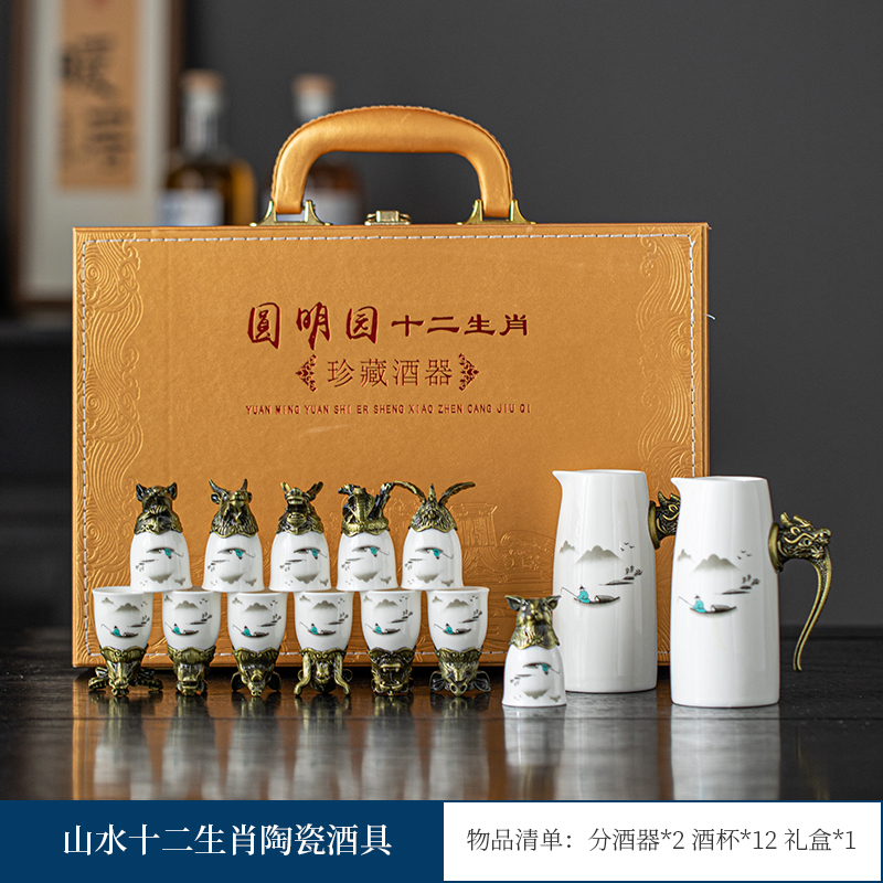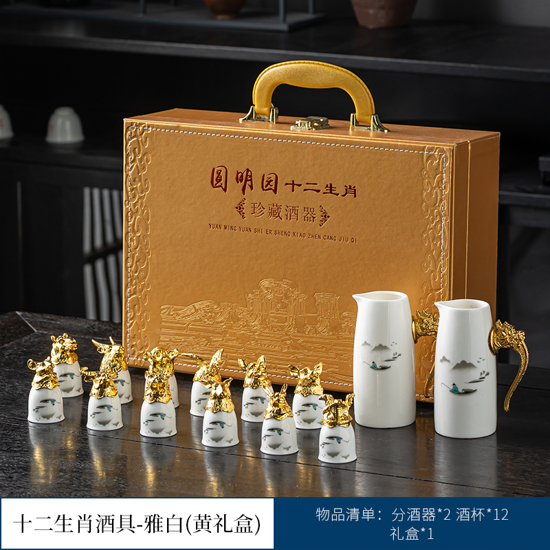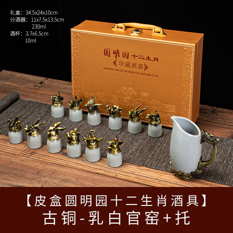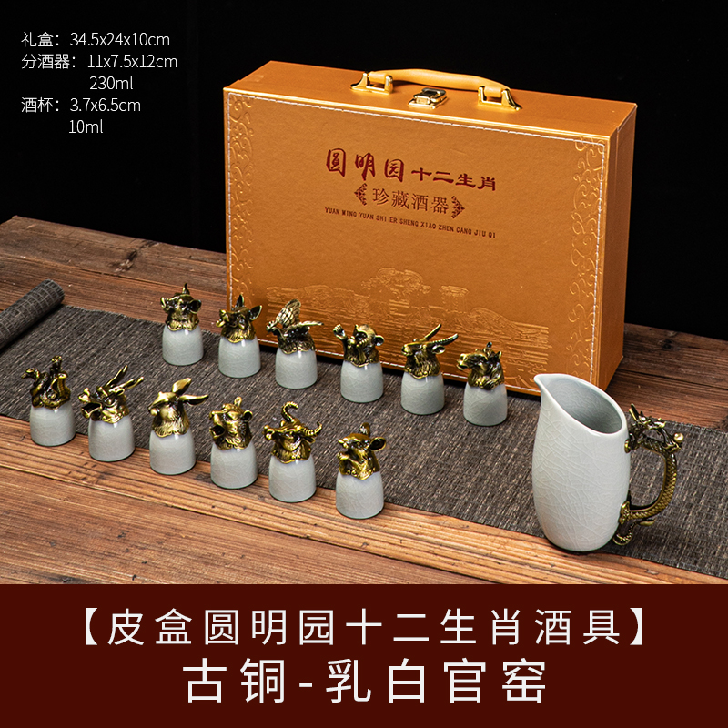yuanmingyuan (leather box yuanmingyuan zodiac wine set) bronze-milky white official kiln [more favorable for the whole box]]