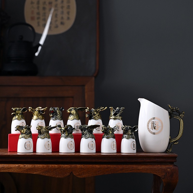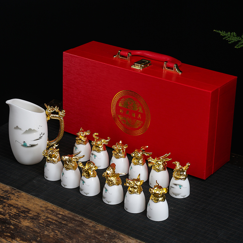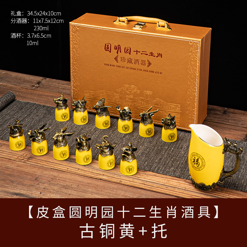 yuanmingyuan (leather box yuanmingyuan twelve zodiac wine set) bronze-milky white official kiln + tray [more favorable for the whole box]]