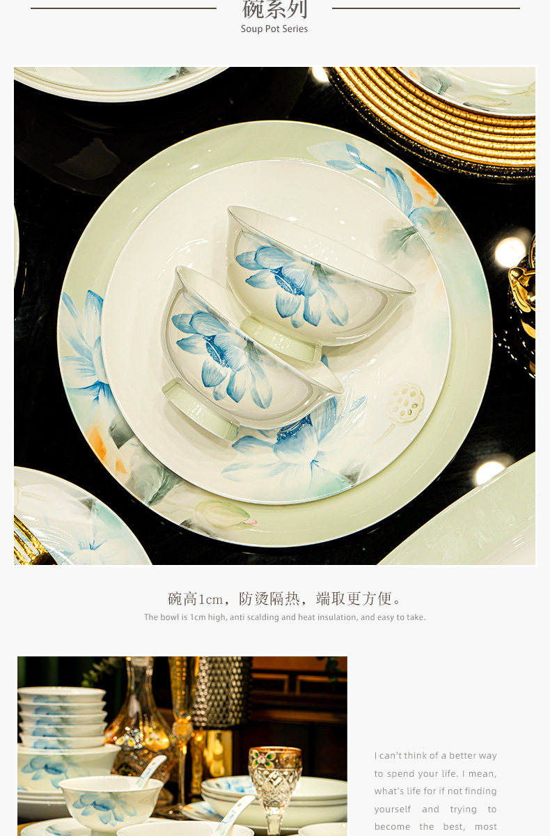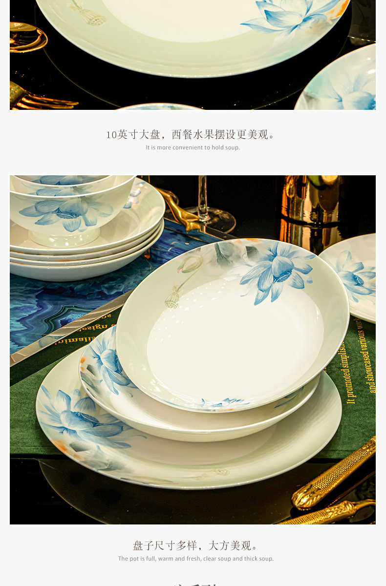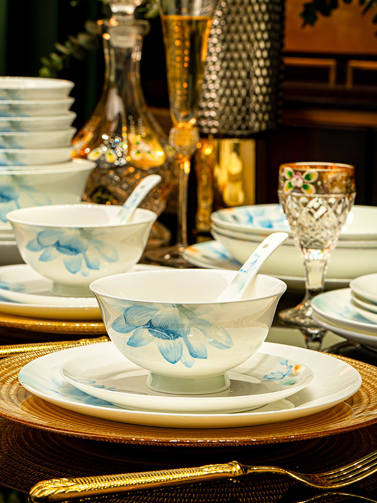 [60 pieces of luxury suit with rich pot] jingdezhen grade i bone china high-end gift box leather case