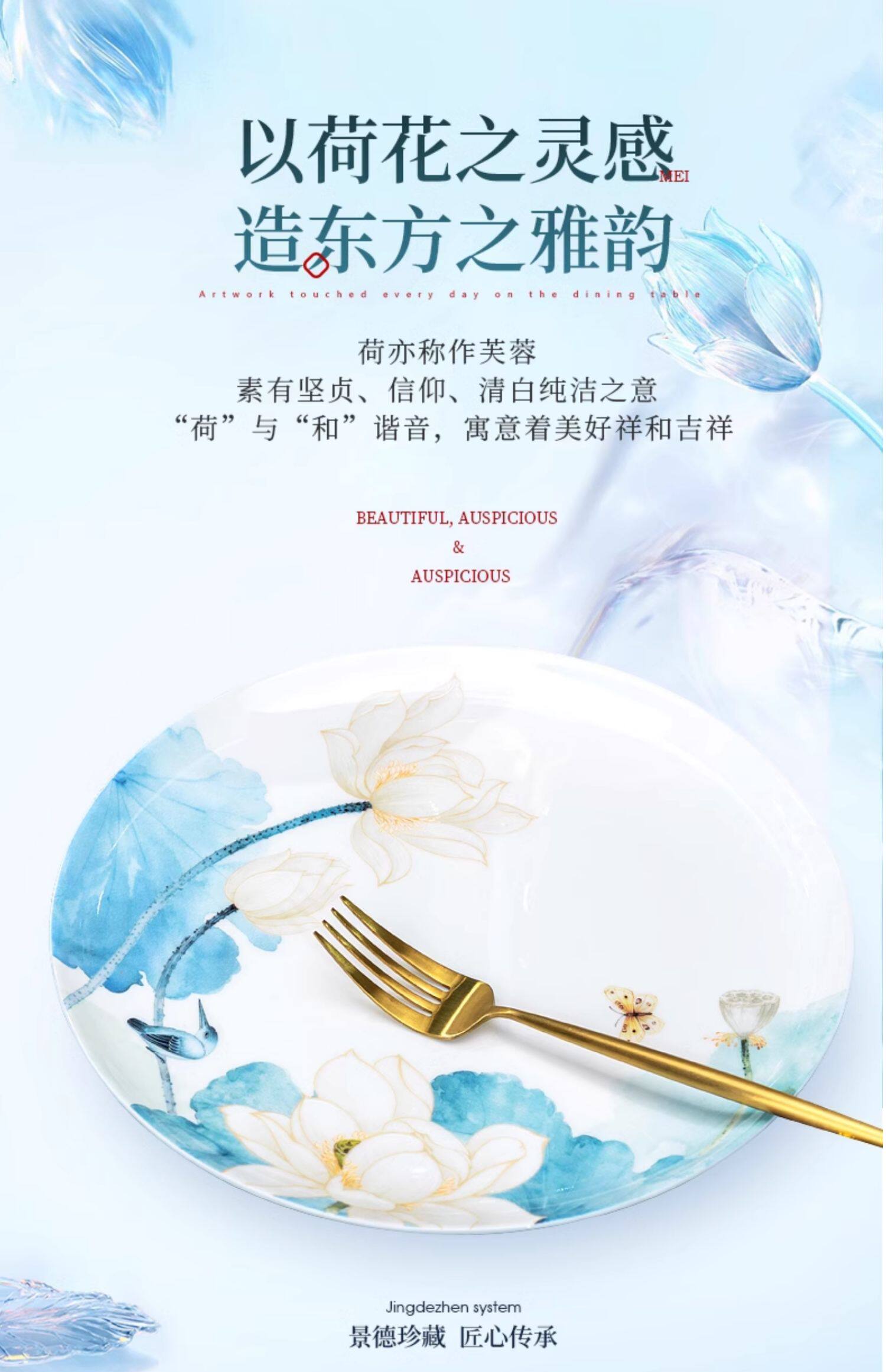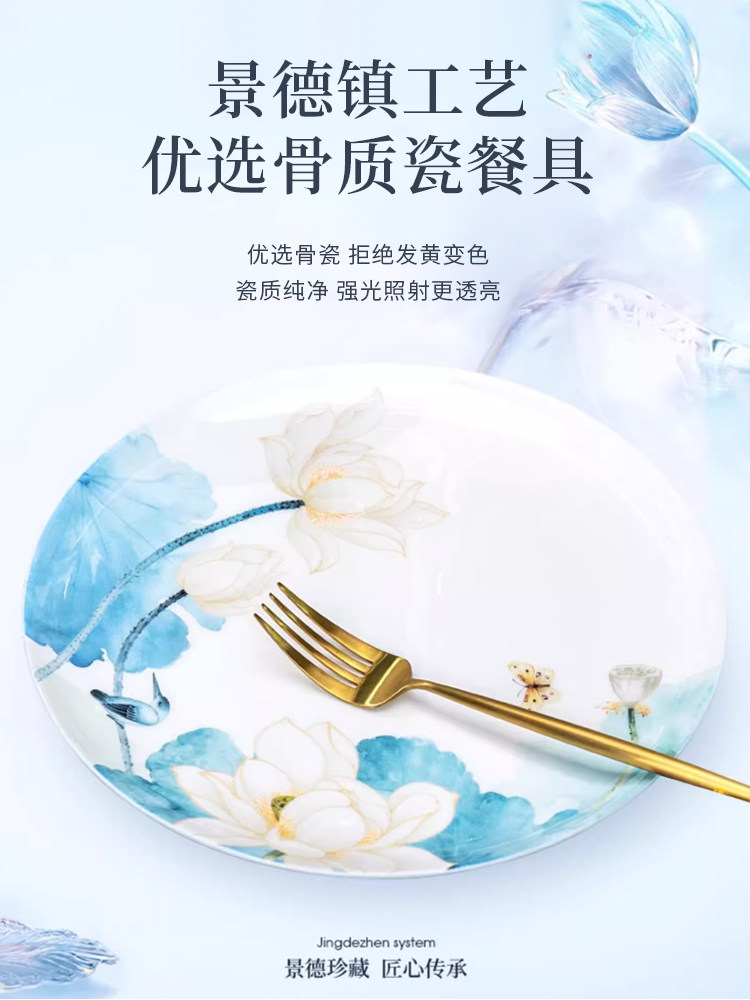 dutch and american 8-inch lotus porcelain plate