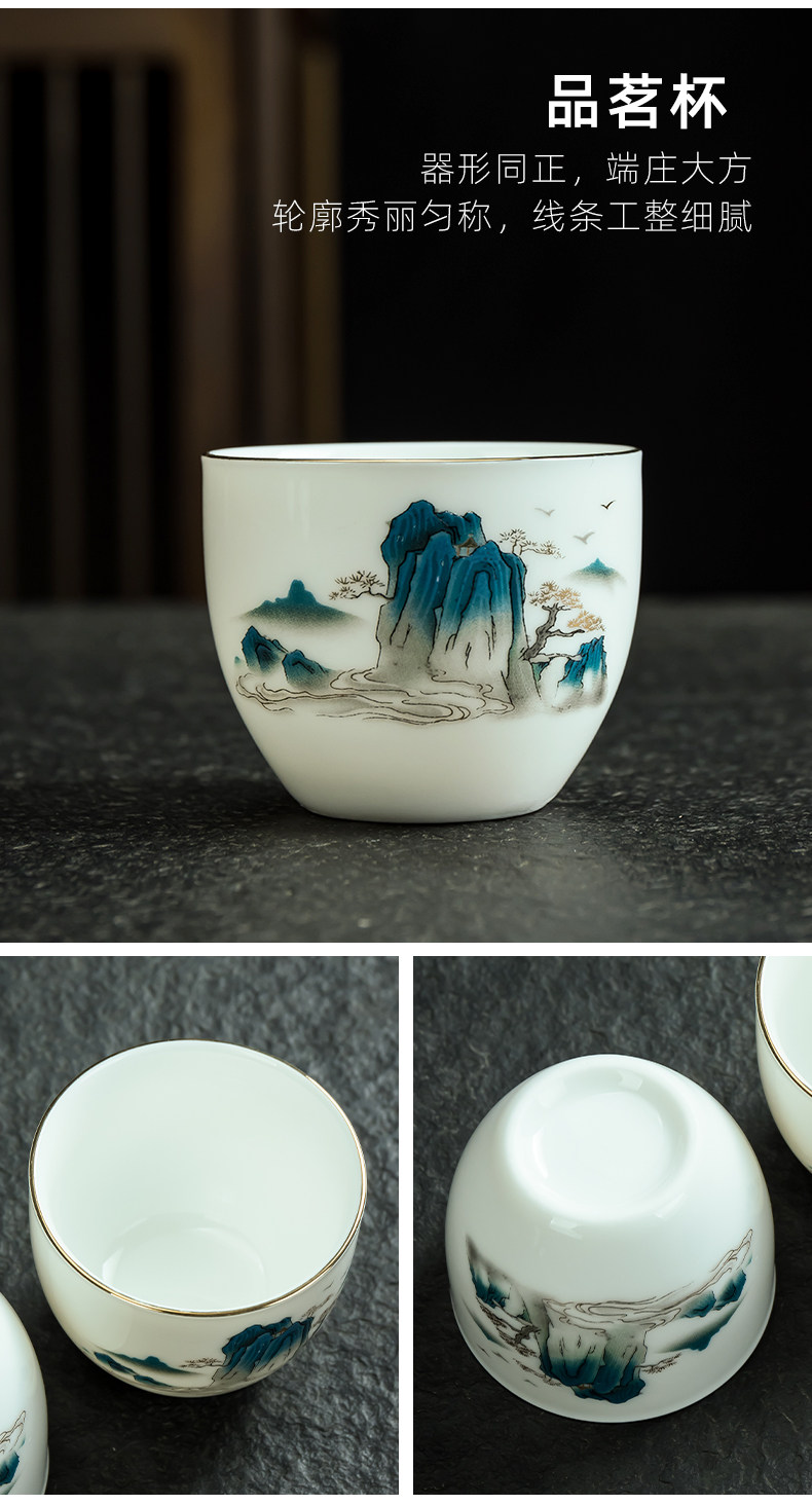 thousand-li landscape 10 pcs set tureen white jade tea set suit