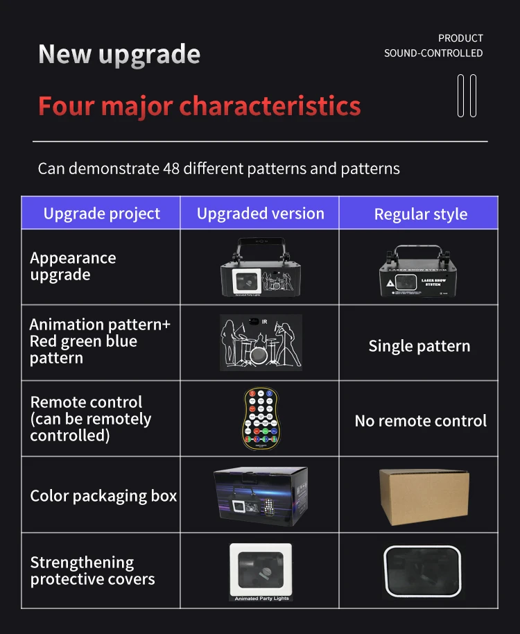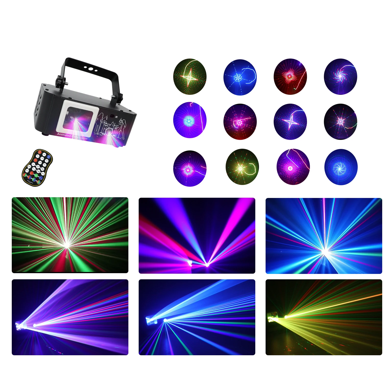 * 【Multiple Working Modes】DJ lights have three working modes. 1. Auto mode (party lights automatically strobe, automatically switch patterns and effects) 2. Flash mode (disco lights quickly switch patterns and effects, speed up) 3. Sound Actived mode (DJ lights change with the rhythm of the music)