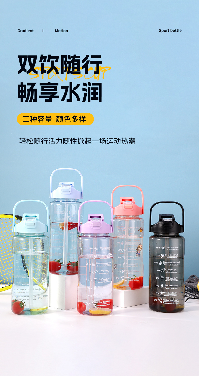 large capacity portable sports plastic scaled cup high temperature resistant student portable kettle outdoor straw plastic cup 中文版