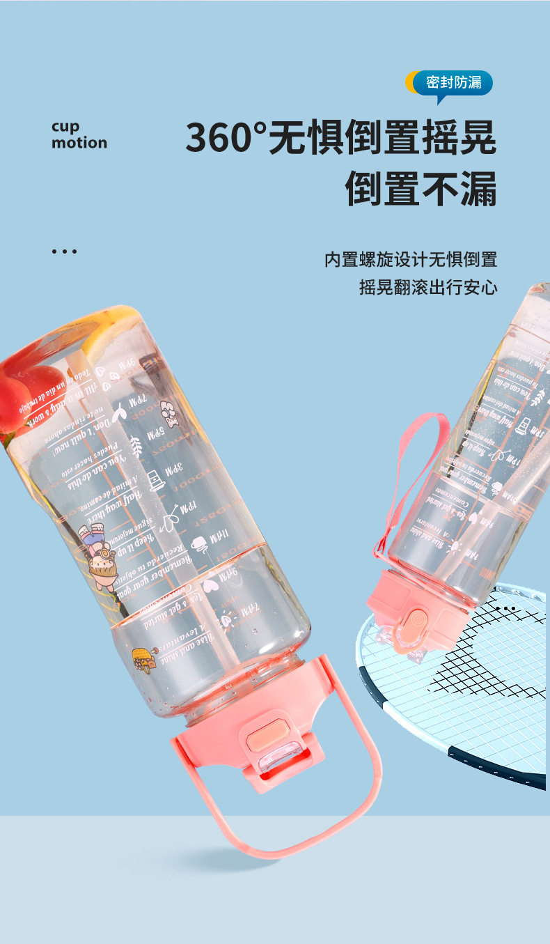 large capacity portable sports plastic scaled cup high temperature resistant student portable kettle outdoor straw plastic cup