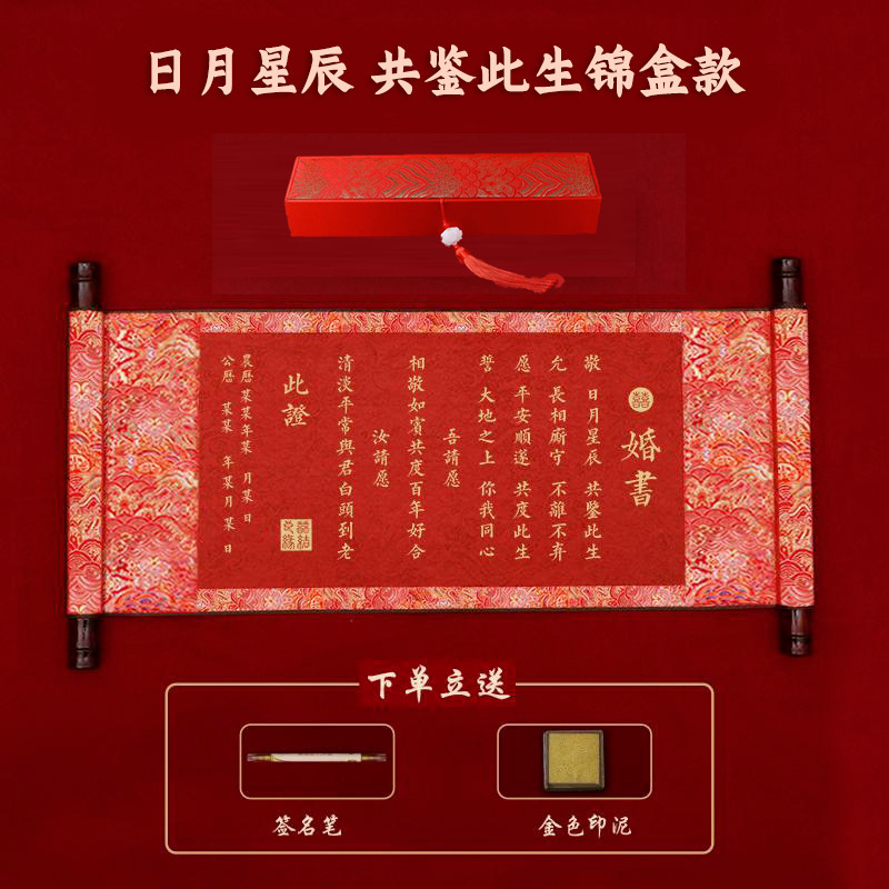 marriage of two surnames-marriage certificate + gift box (gold pen + gold inkpad for free)