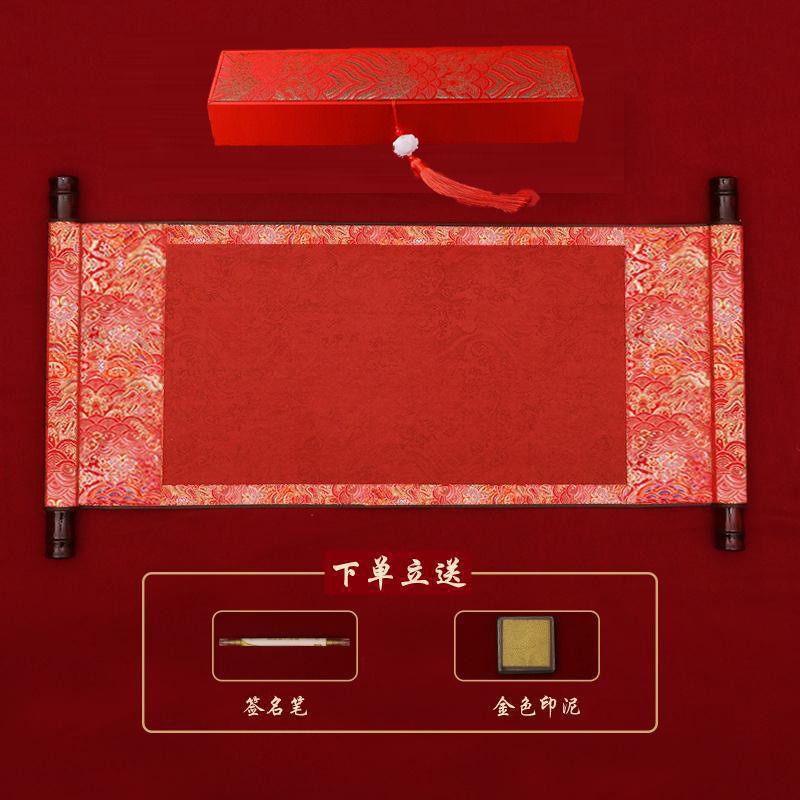 blank model-scroll + gift box (send golden pen + golden inkpad)