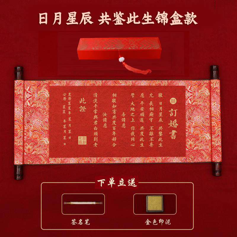 marriage of two surnames-engagement book + gift box (send golden pen + golden inkpad)