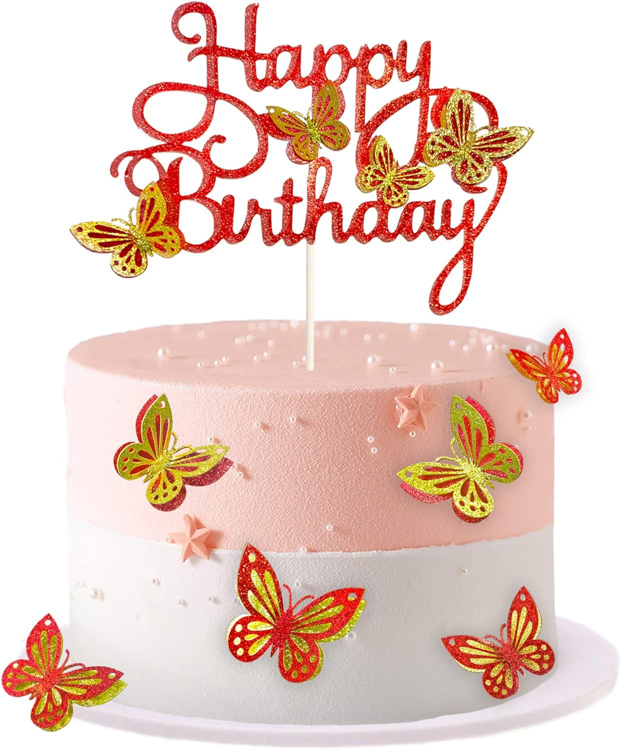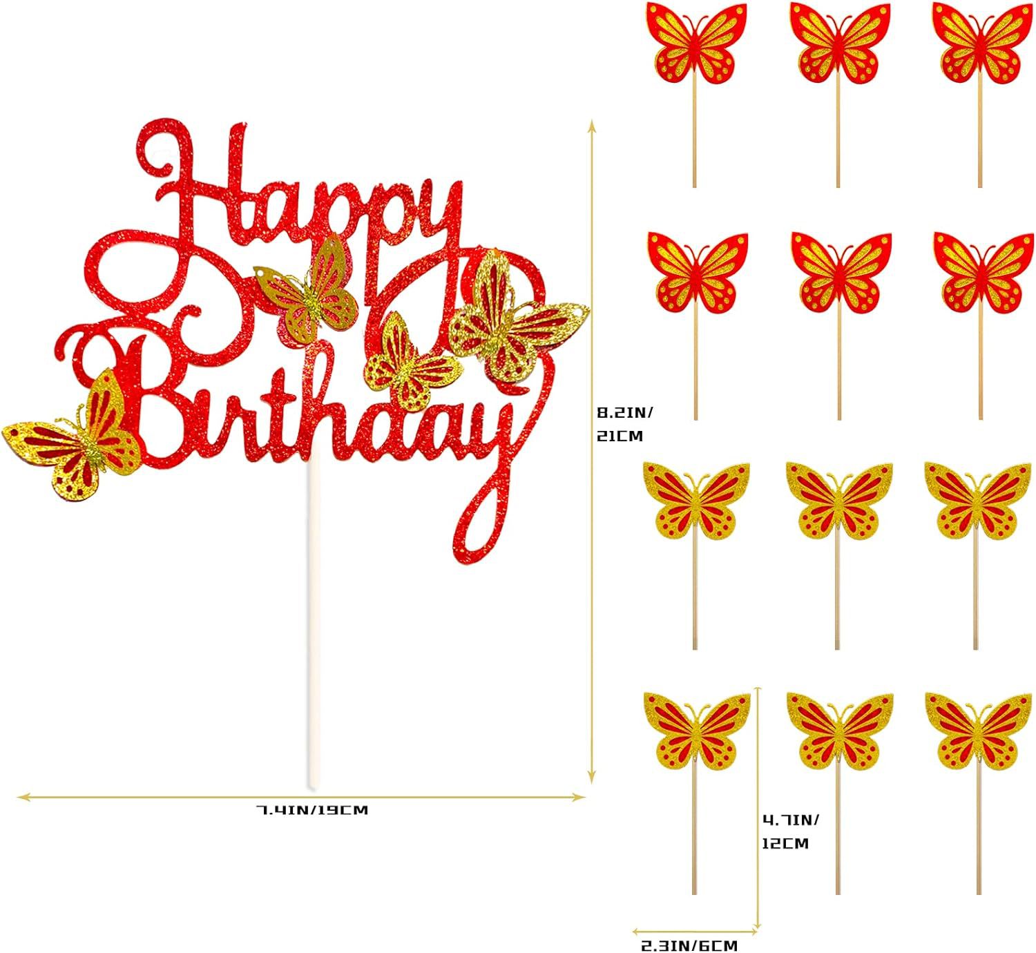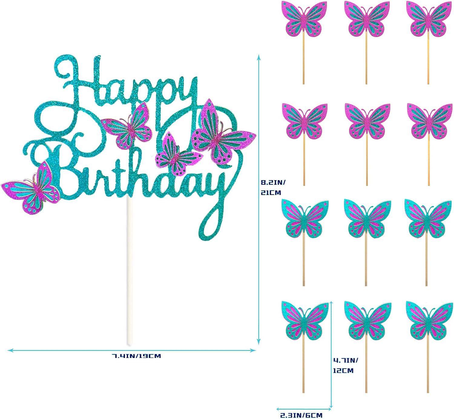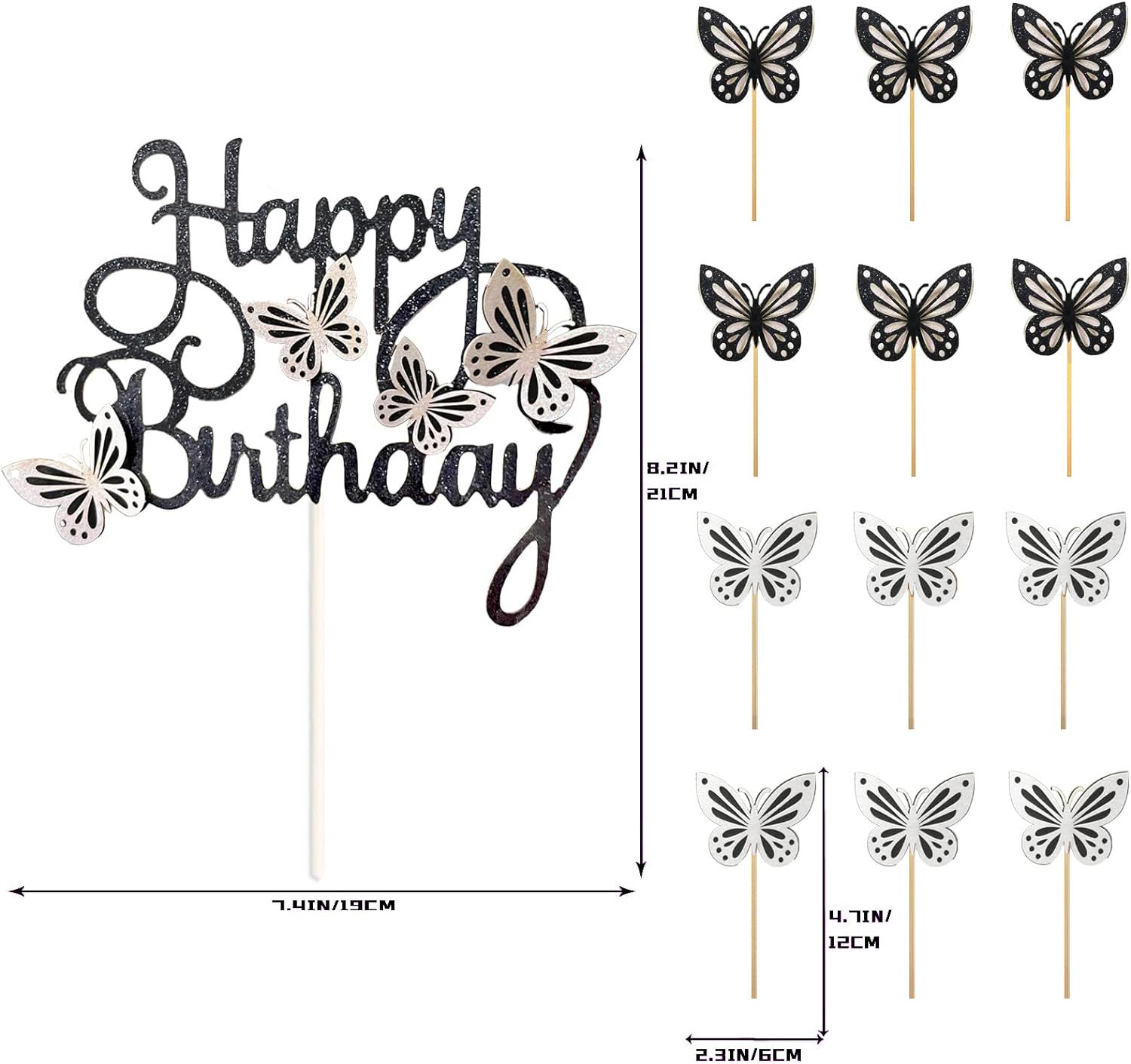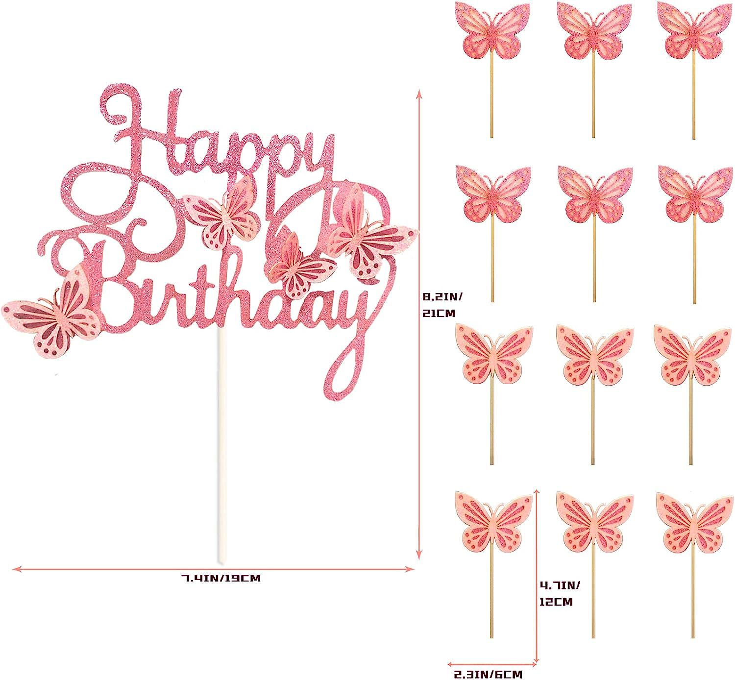 birthday party 3d hollow happy birthday butterfly cake inserting card theme pink suit topper for baking 中文版