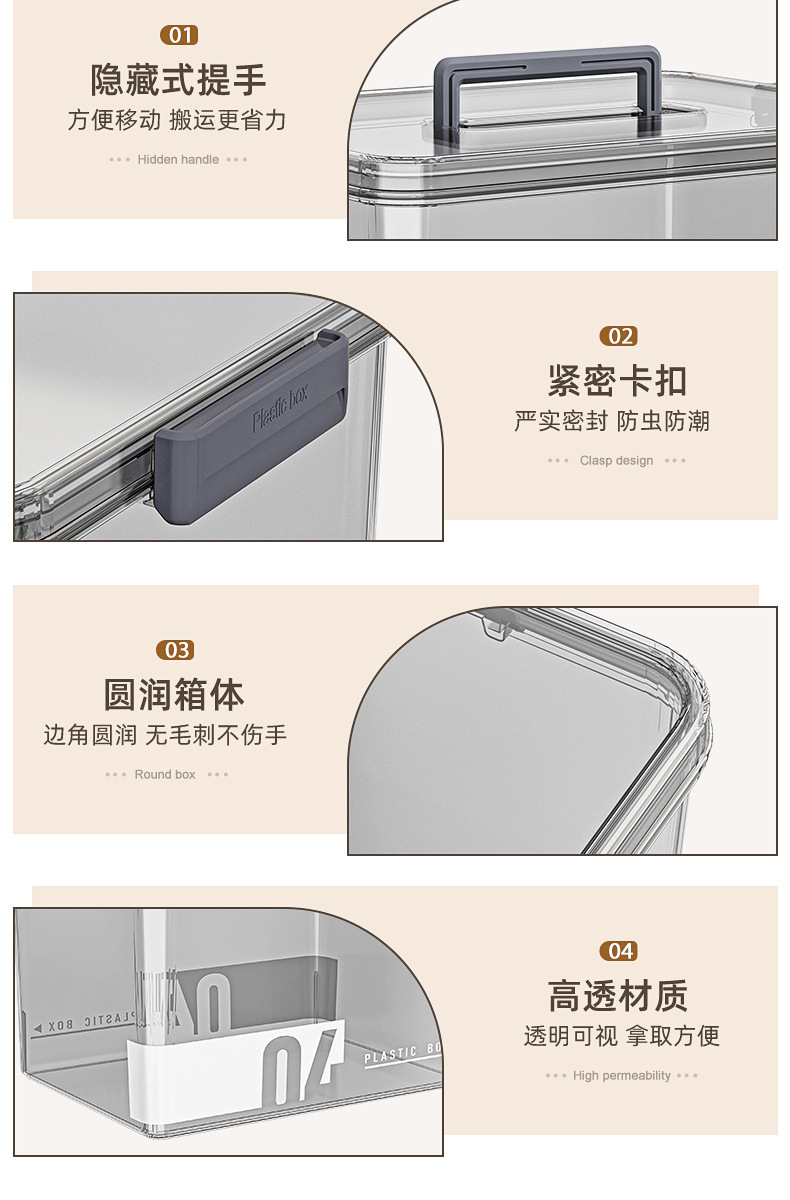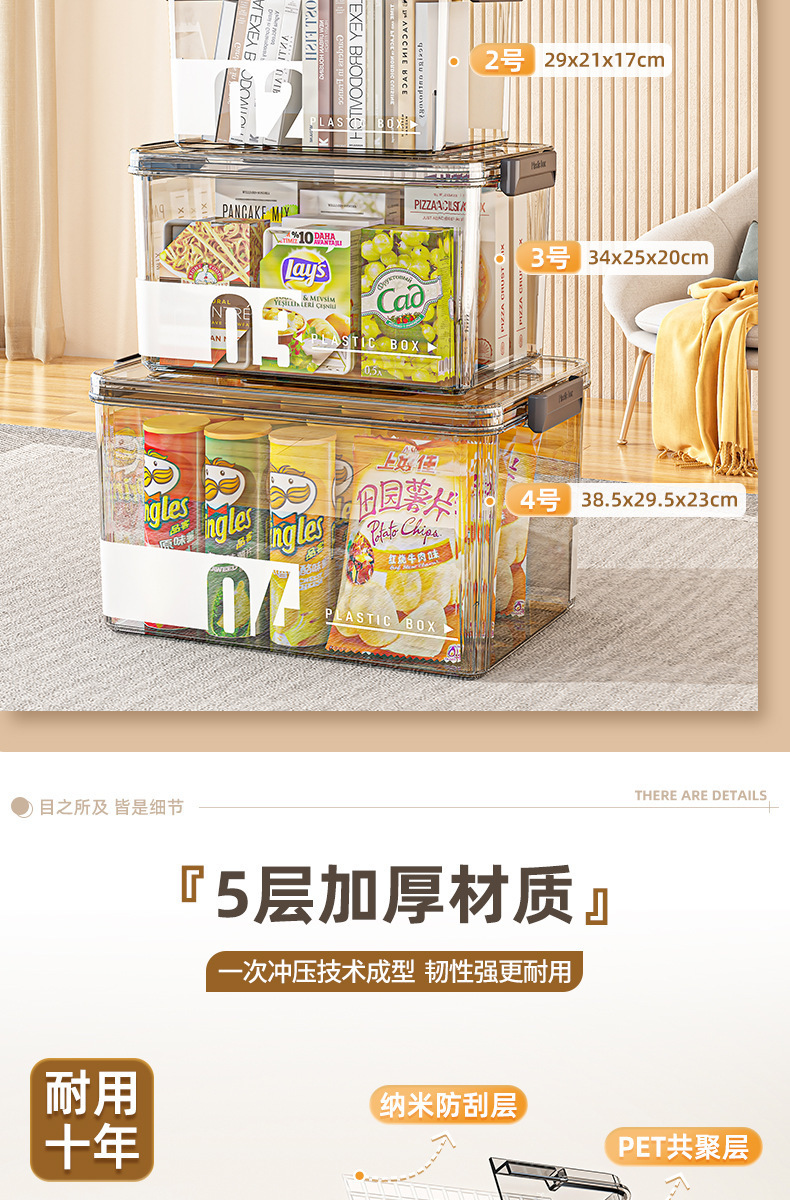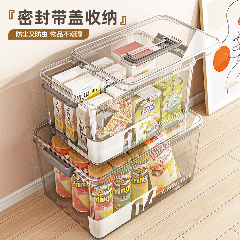 household storage box dustproof with cover snacks and drinks storage box large capacity desktop compartmented storage boxes with handle 中文版
