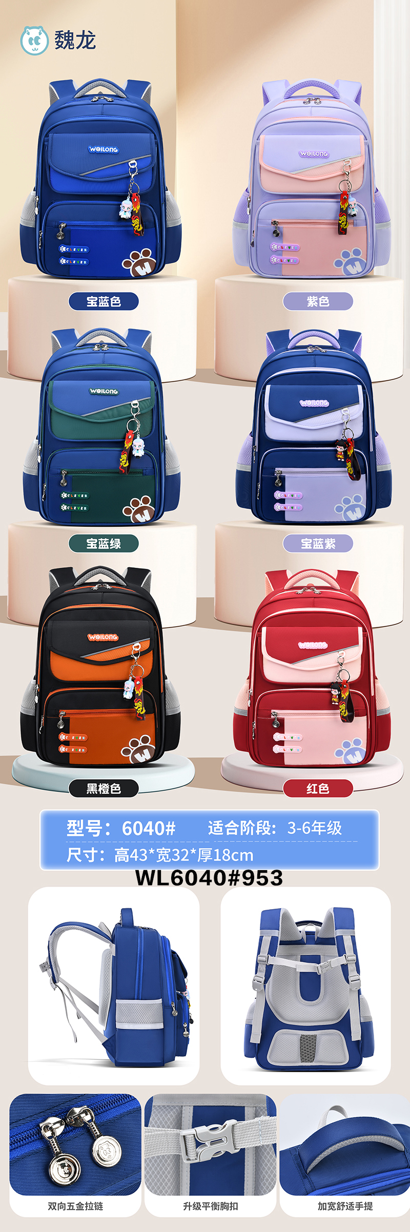 meifang bag yiding bag new schoolbag large capacity student backpack primary school grade 3-6 中文版