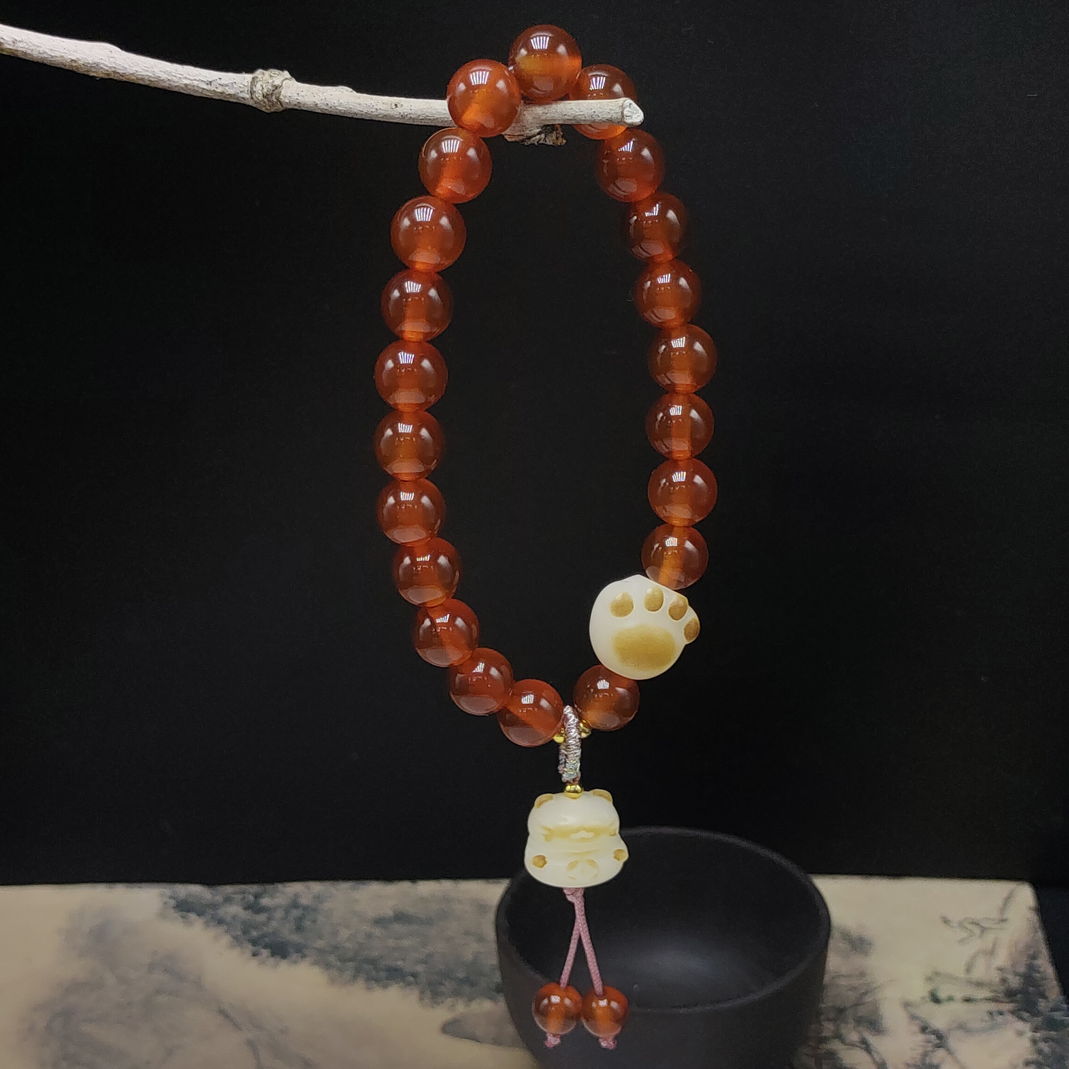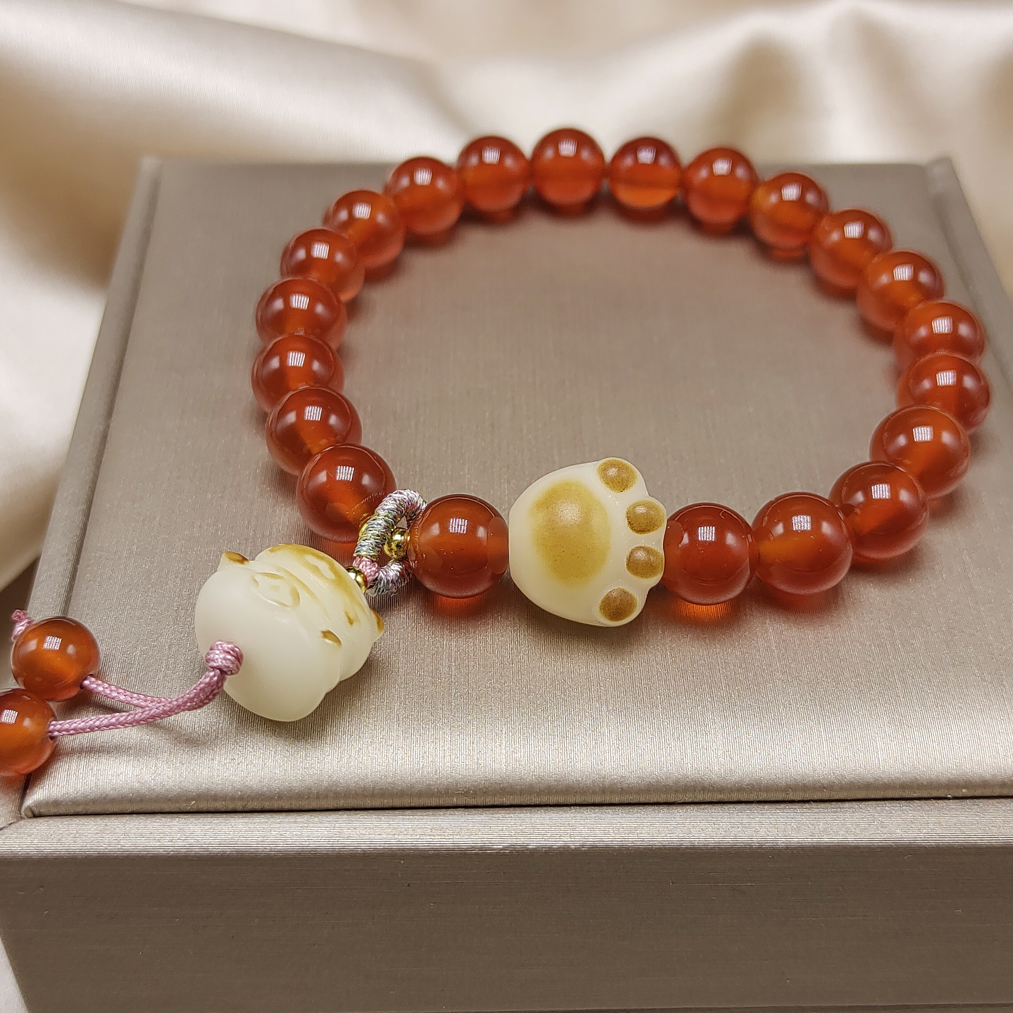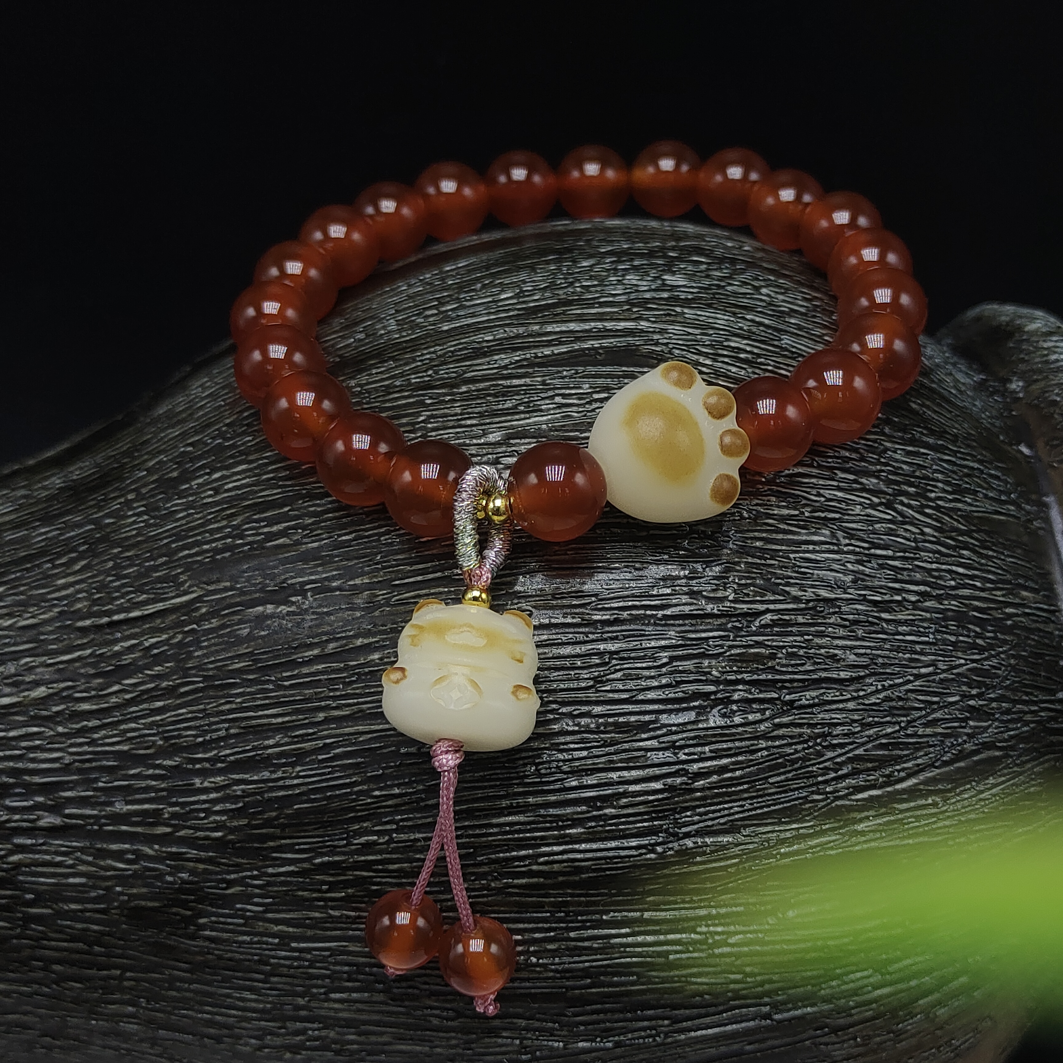 品名:红玛瑙菩提猫咪手链