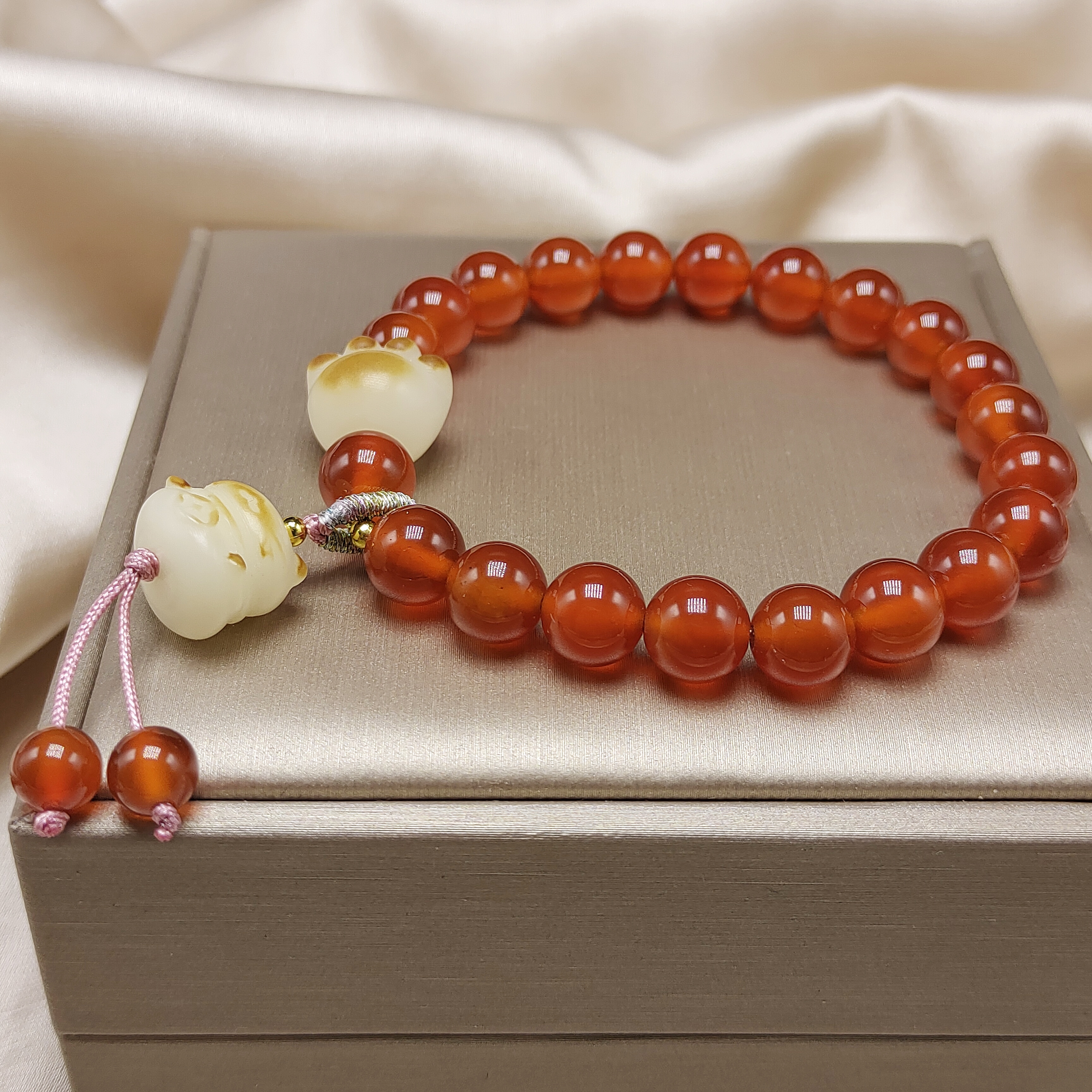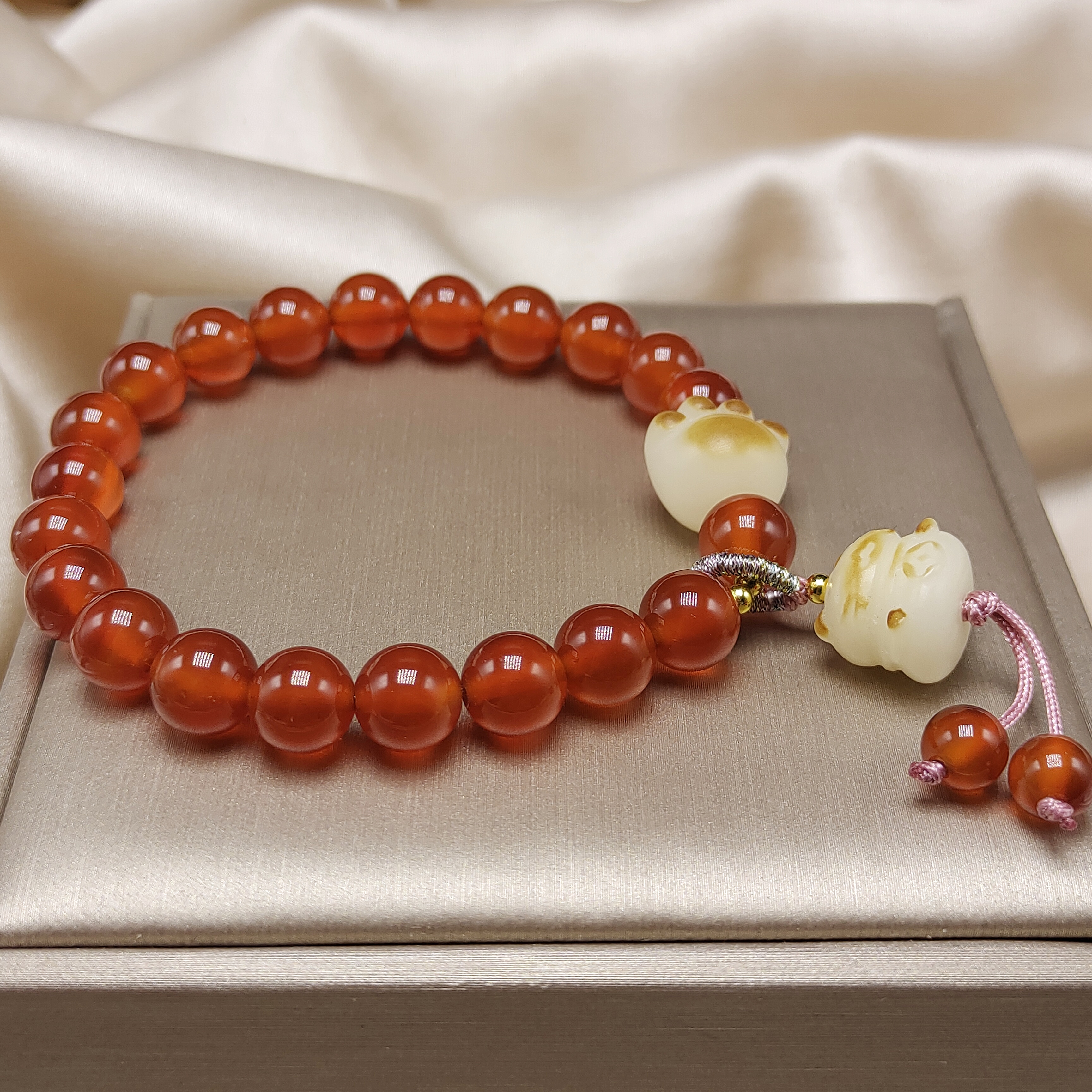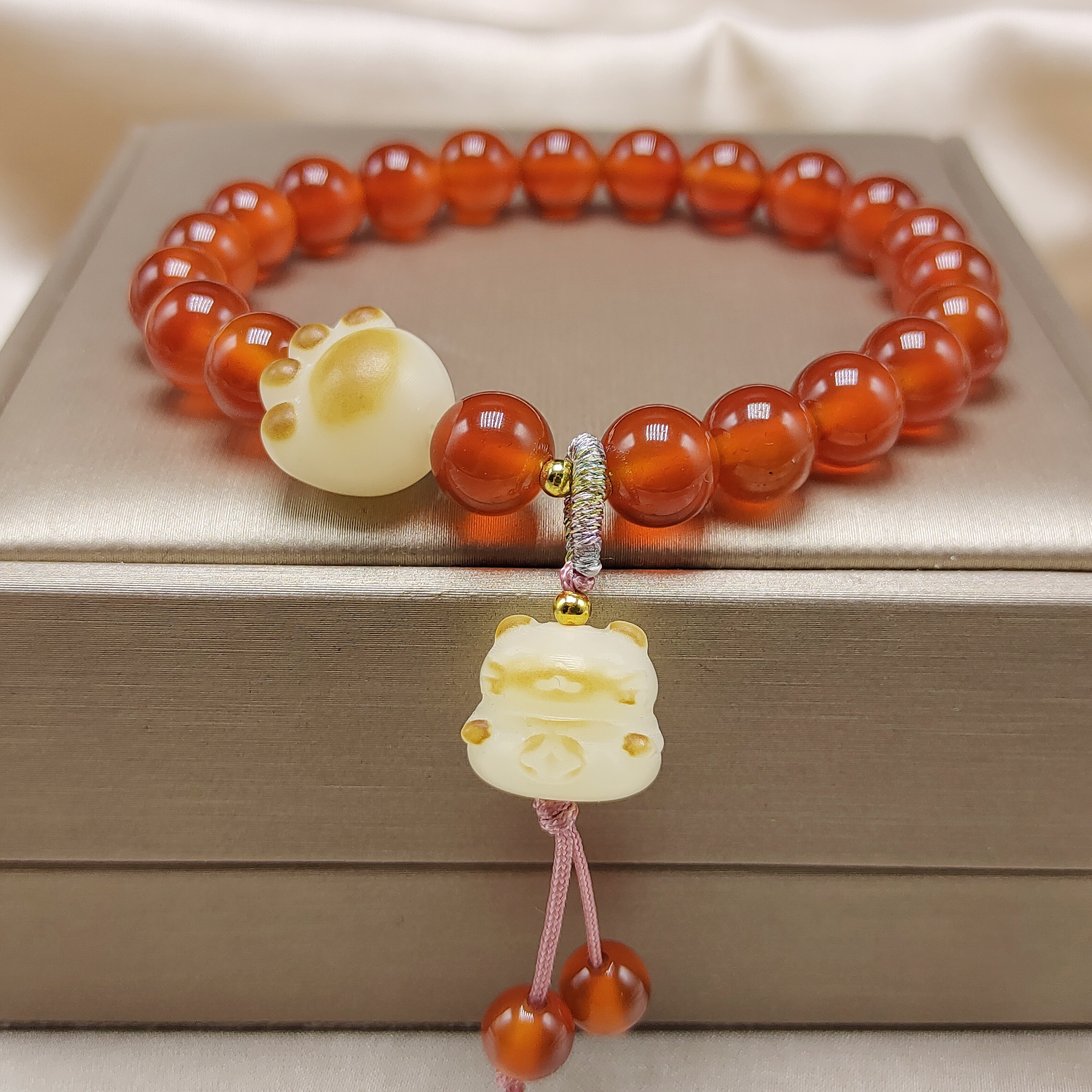 品名:红玛瑙菩提猫咪手链