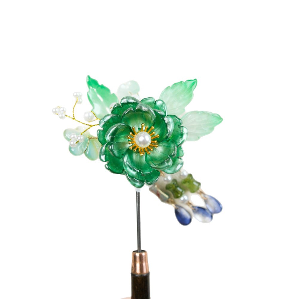 green antique wearing flower