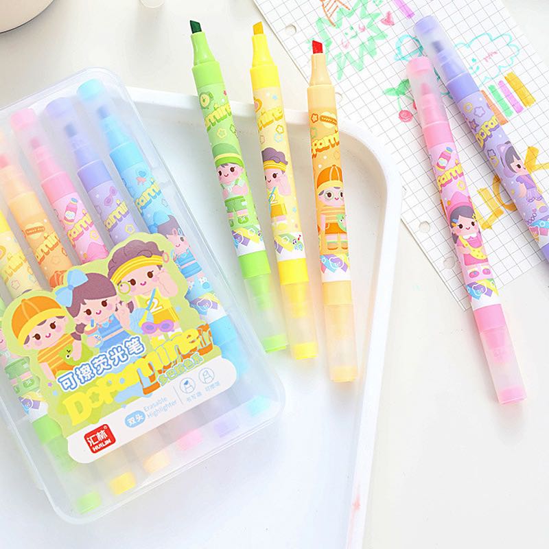 6-color double-headed soft head erasable fluorescent pen light color mark key hand account color fluorescent painting silver pen h