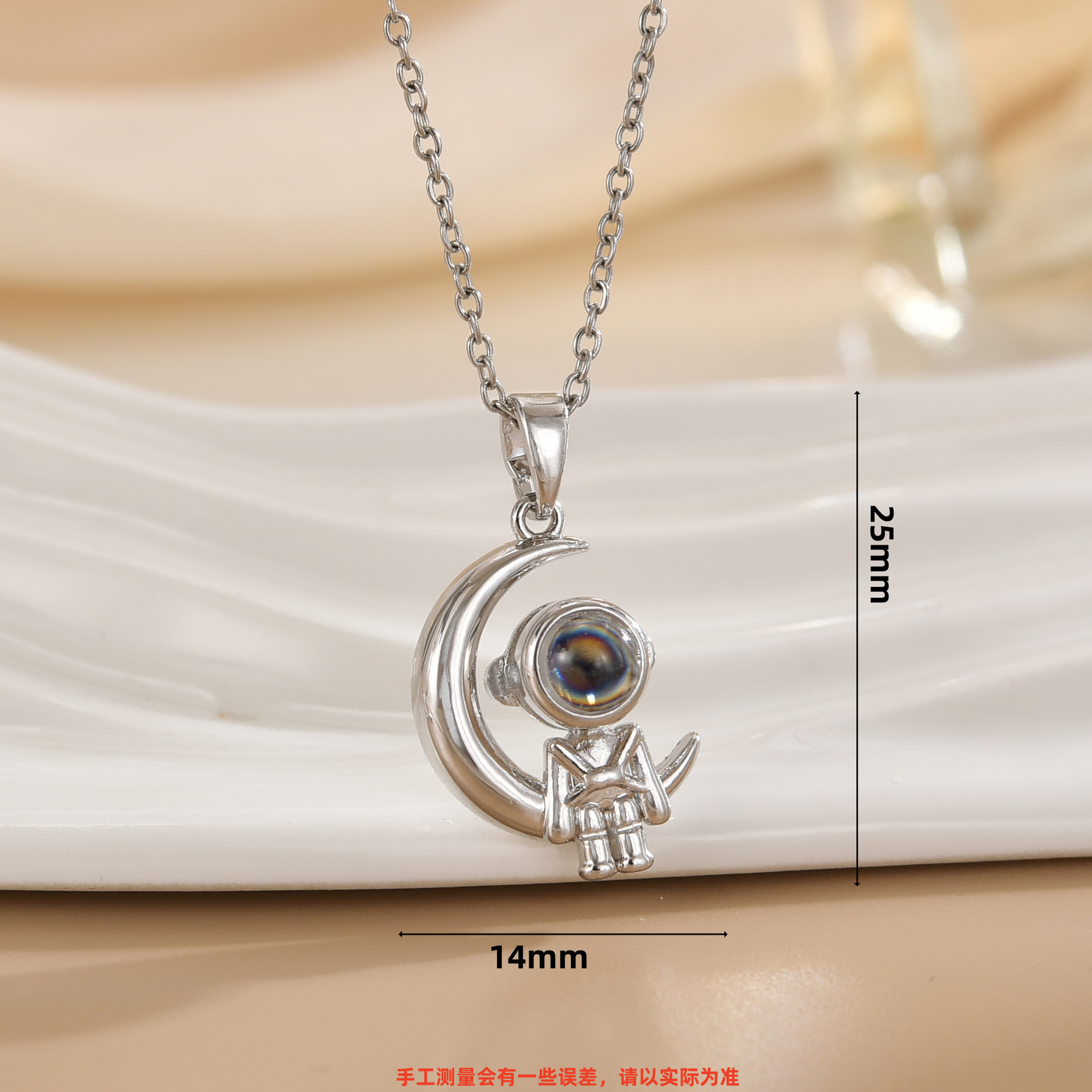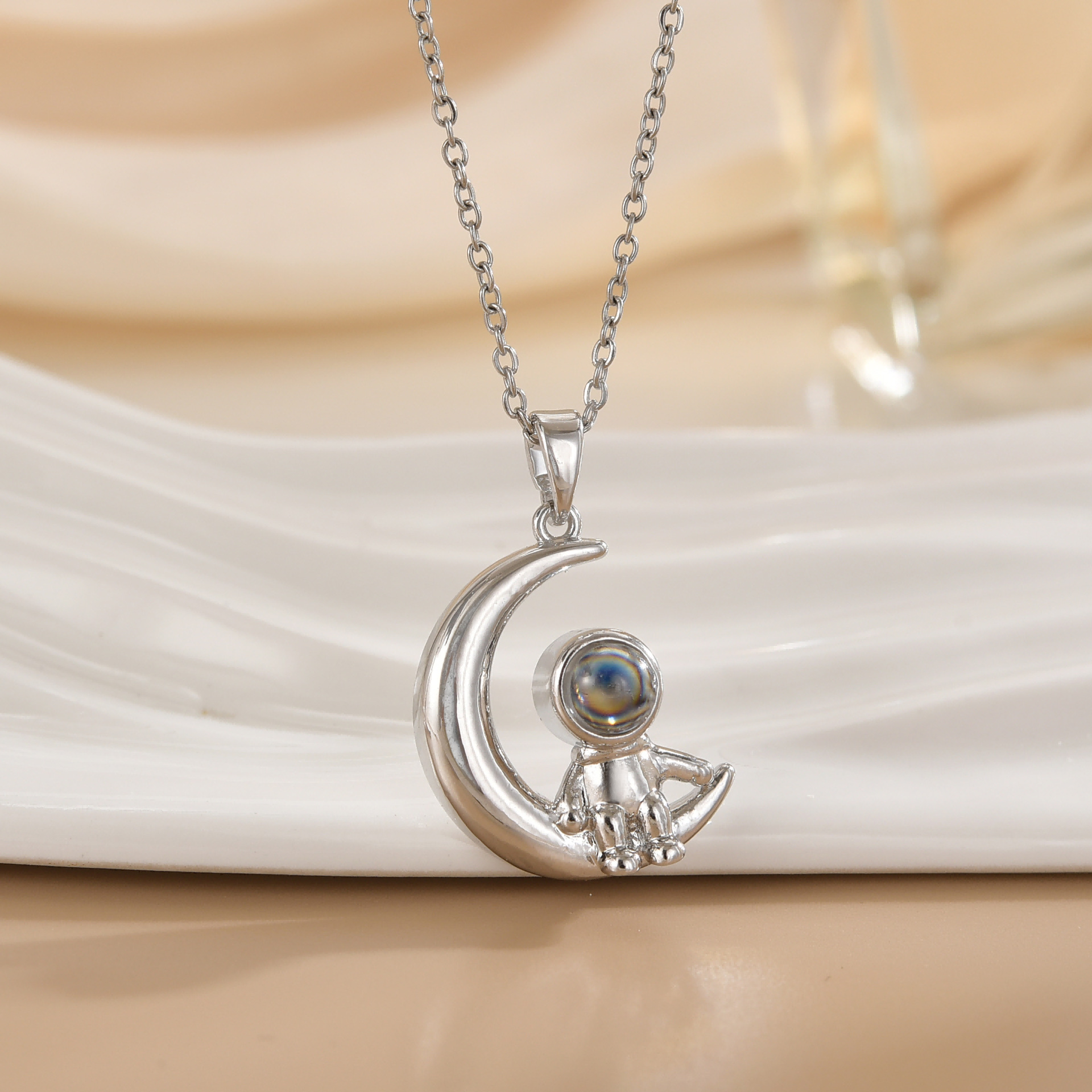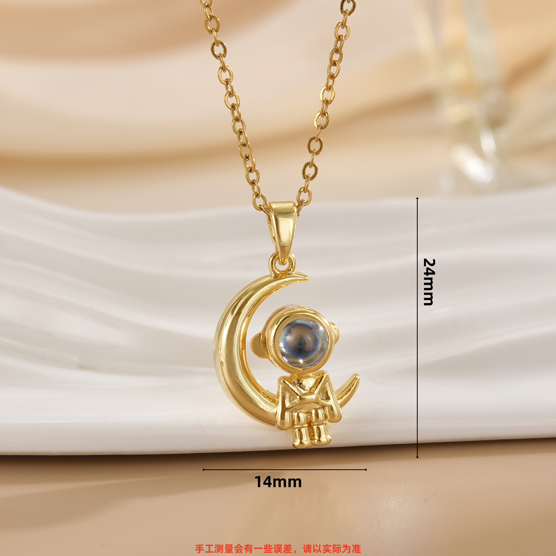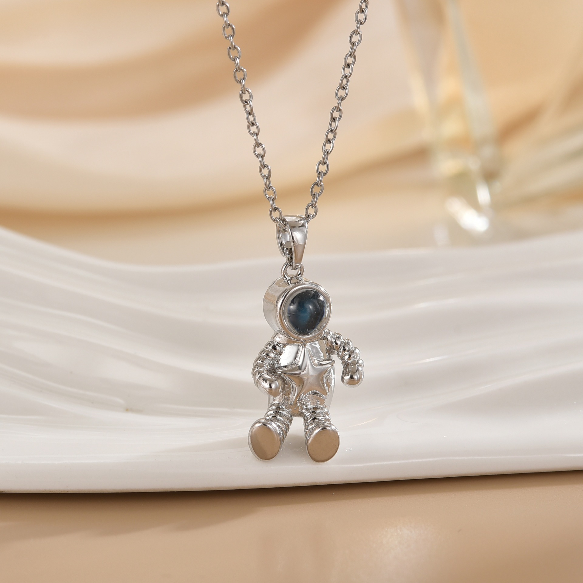 trendy hot sale spaceman projection star picking astronaut pendant affordable luxury fashion high-grade necklace titanium steel clavicle chain 中文版