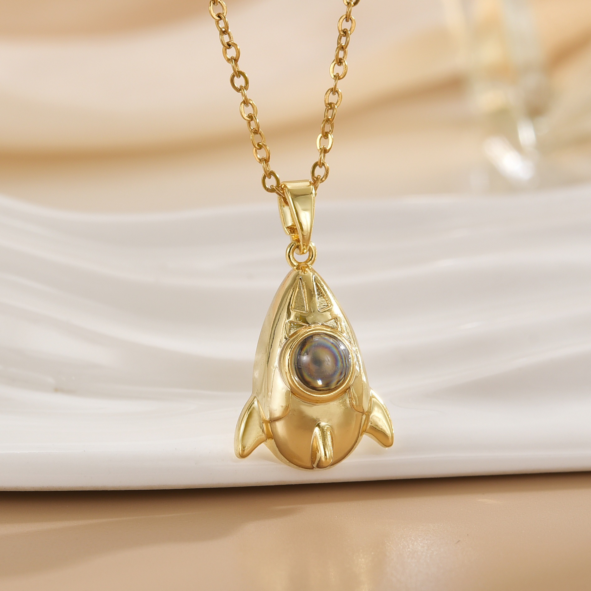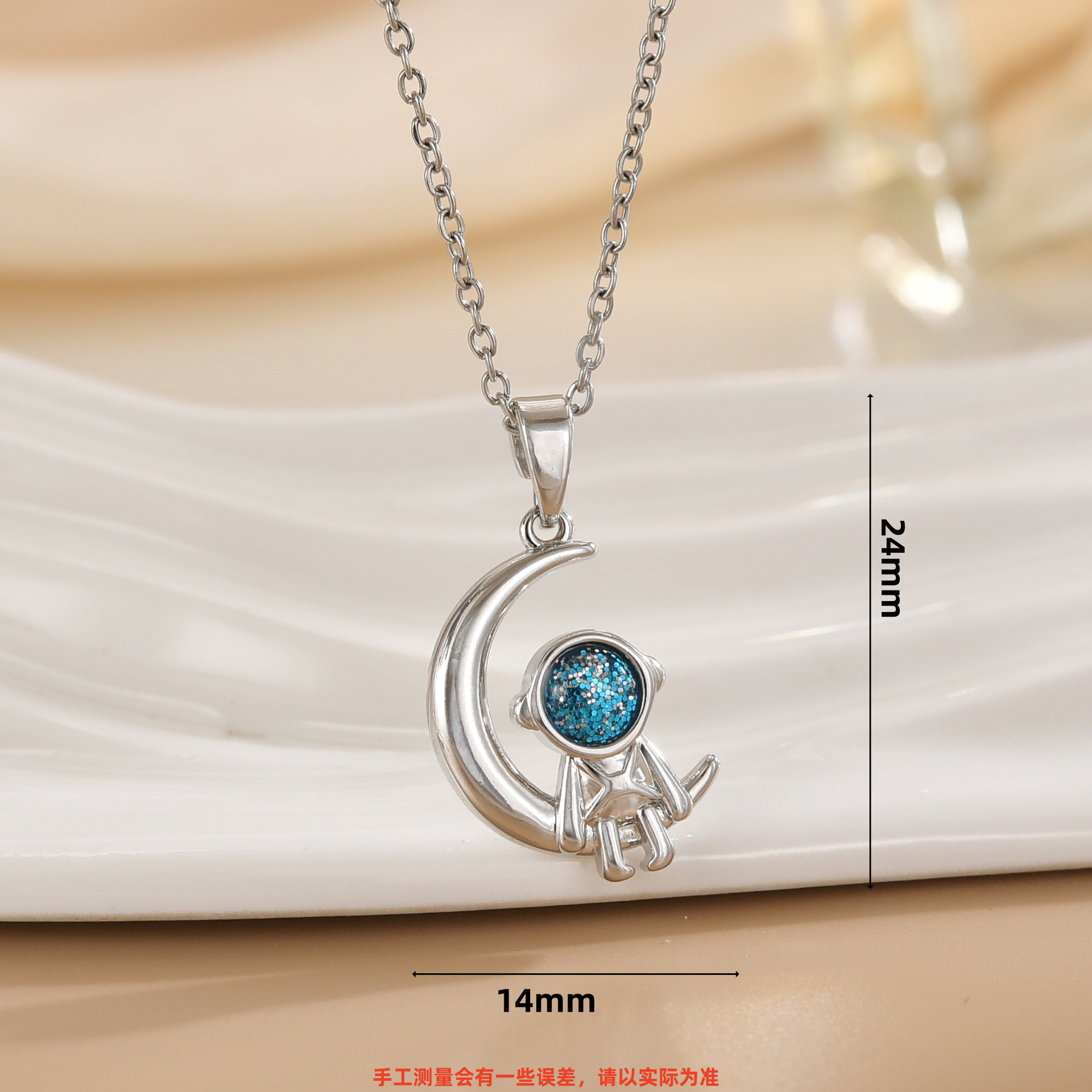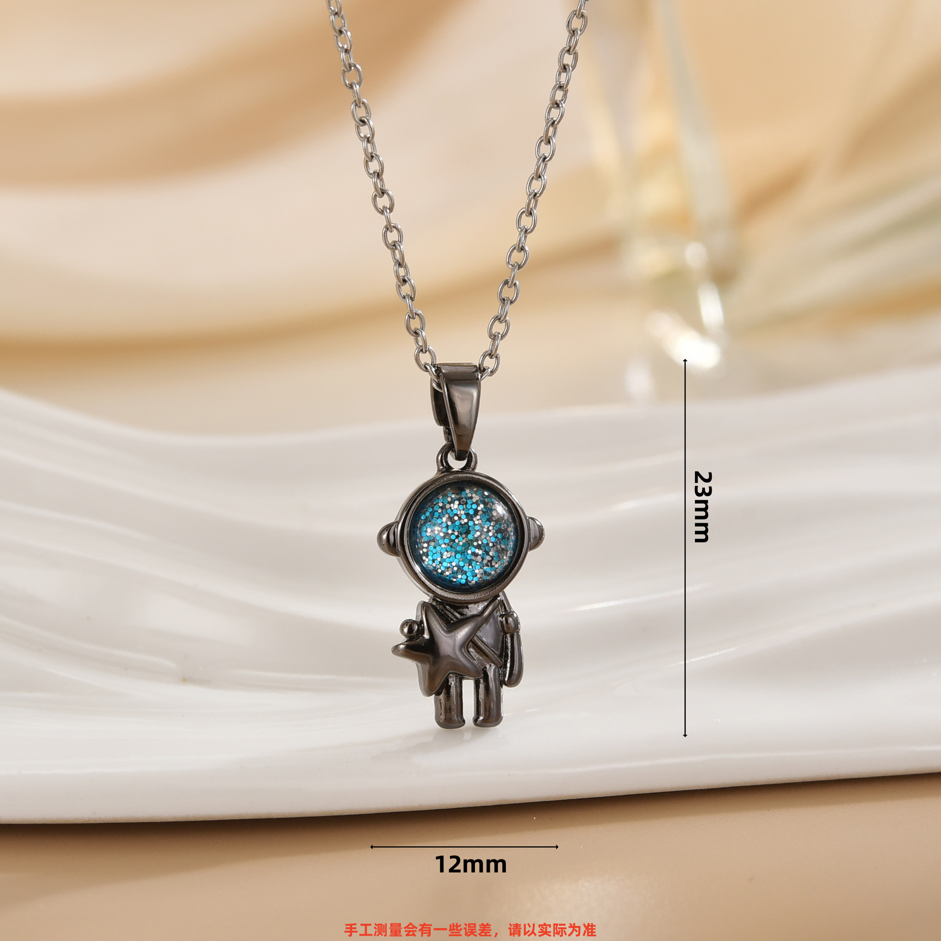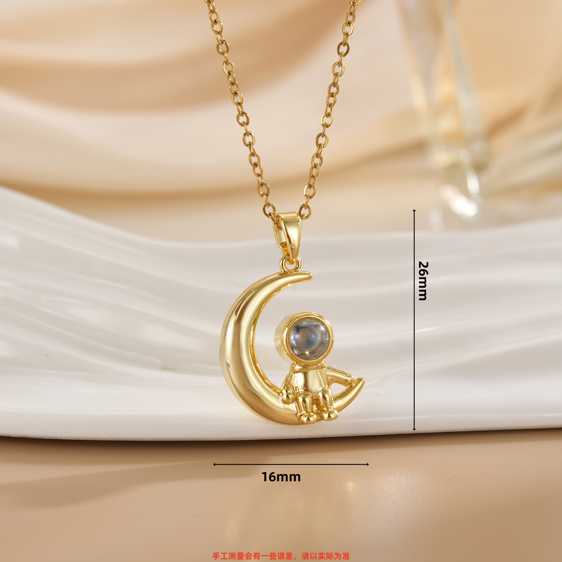 trendy hot sale spaceman projection star picking astronaut pendant affordable luxury fashion high-grade necklace titanium steel clavicle chain 中文版