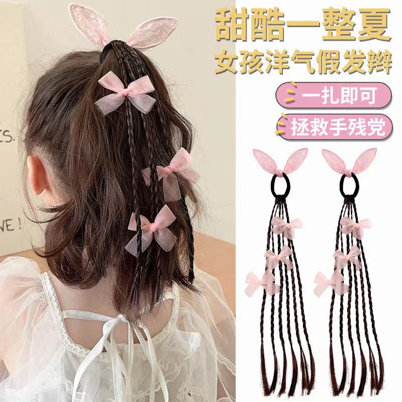 children's wig dough-twist style plaits hair band sweet cool boxing braid rubber band little girl high ponytail bowknot headband hair accessories 中文版