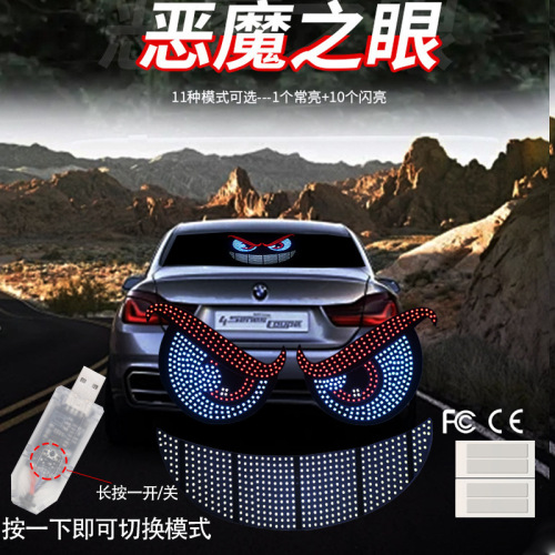 cross-border new arrival car demon eye light led decorative lamp rear window expression dynamic eye lamp vehicle-mounted warning light 中文版