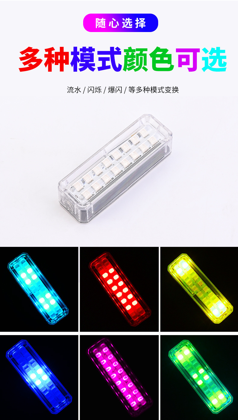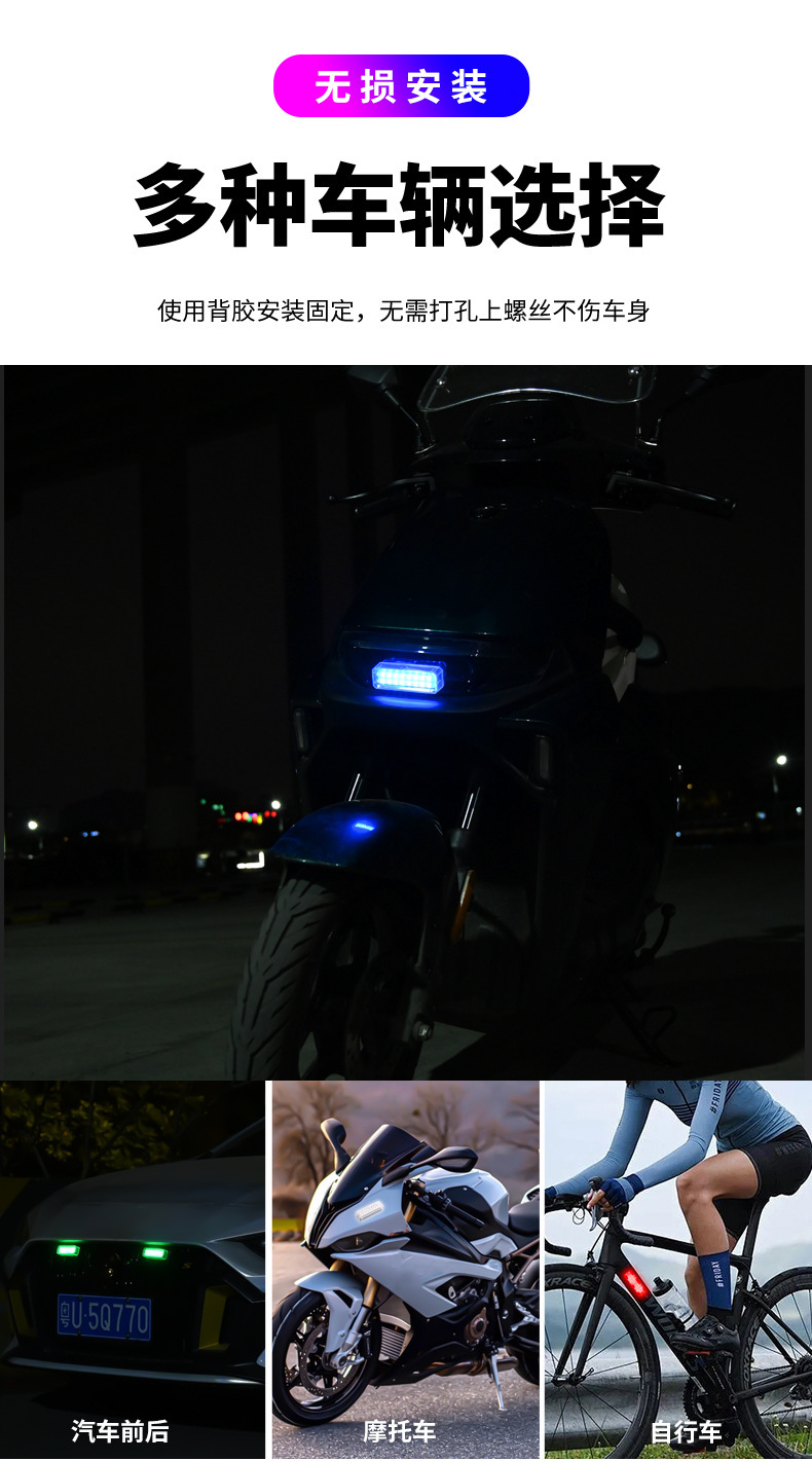 car solar flashing warning lights motorcycle electric vehicle anti-shunt taillight change decoration double row bright led taillight 中文版