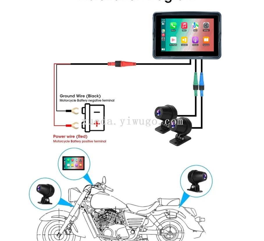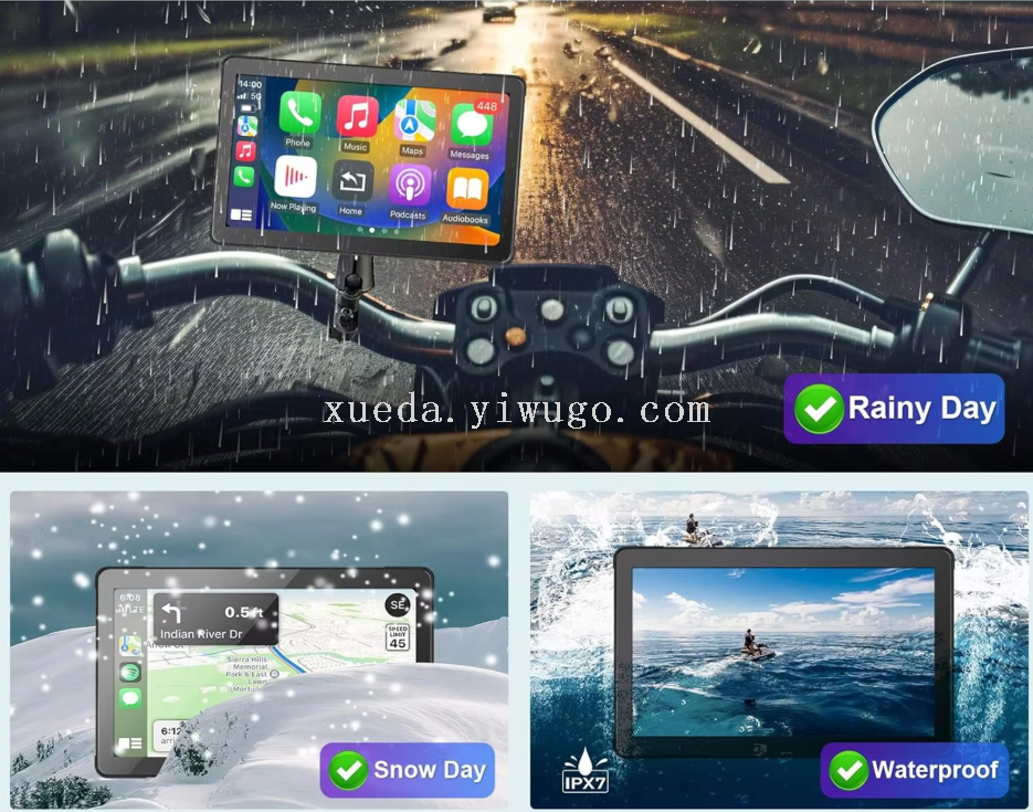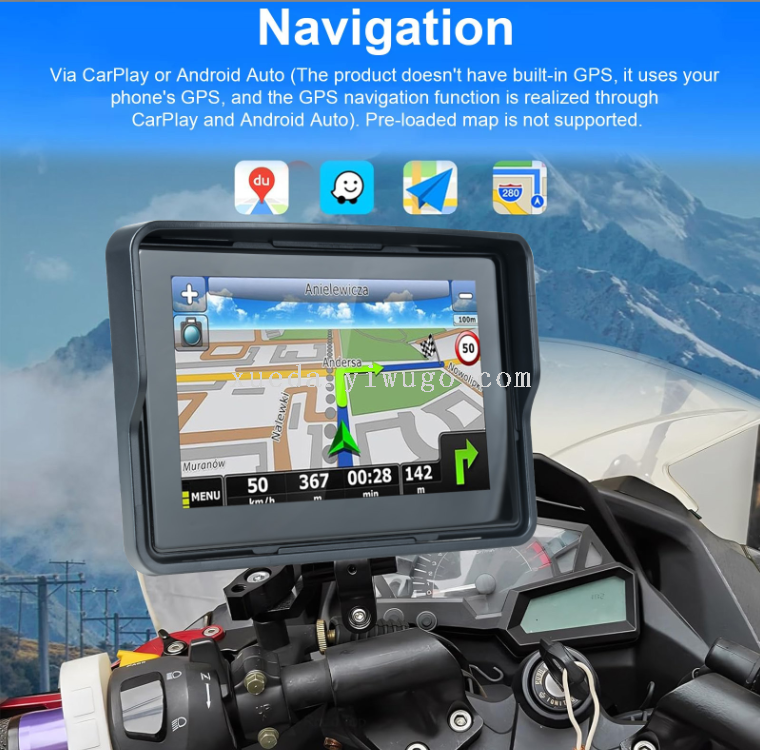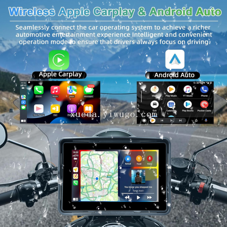 5-inch waterproof motorcycle pnd wireless carplay + android auto standard camera + tire pressure detector