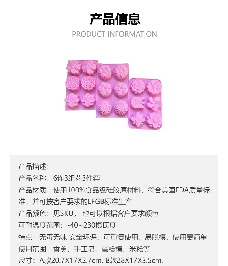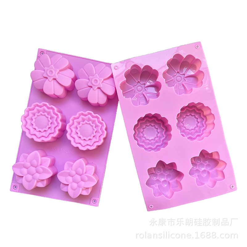 6-piece 3-piece set of flowers pink