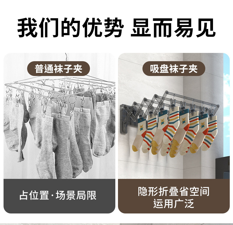 suction cup sock artifact balcony household socks underwear underwear drying rack folding multi-clip hanger socks clip 中文版