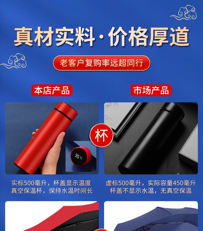 golden 304 digital display cup + power bank + umbrella/red gift box with line