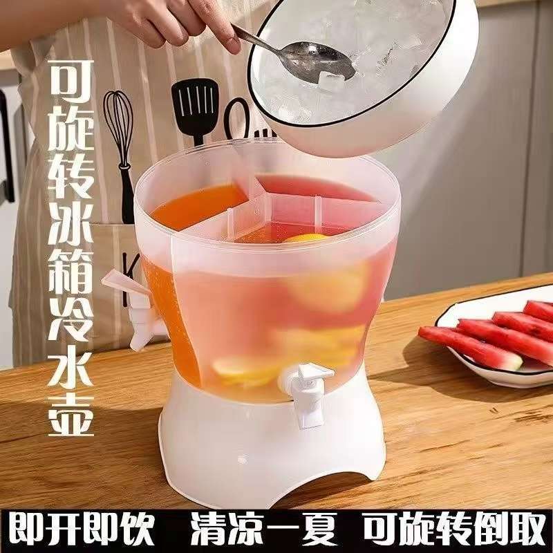 cold water bottle with faucet rotatable large capacity division household summer essential beverage barrel three-grid ice bucket