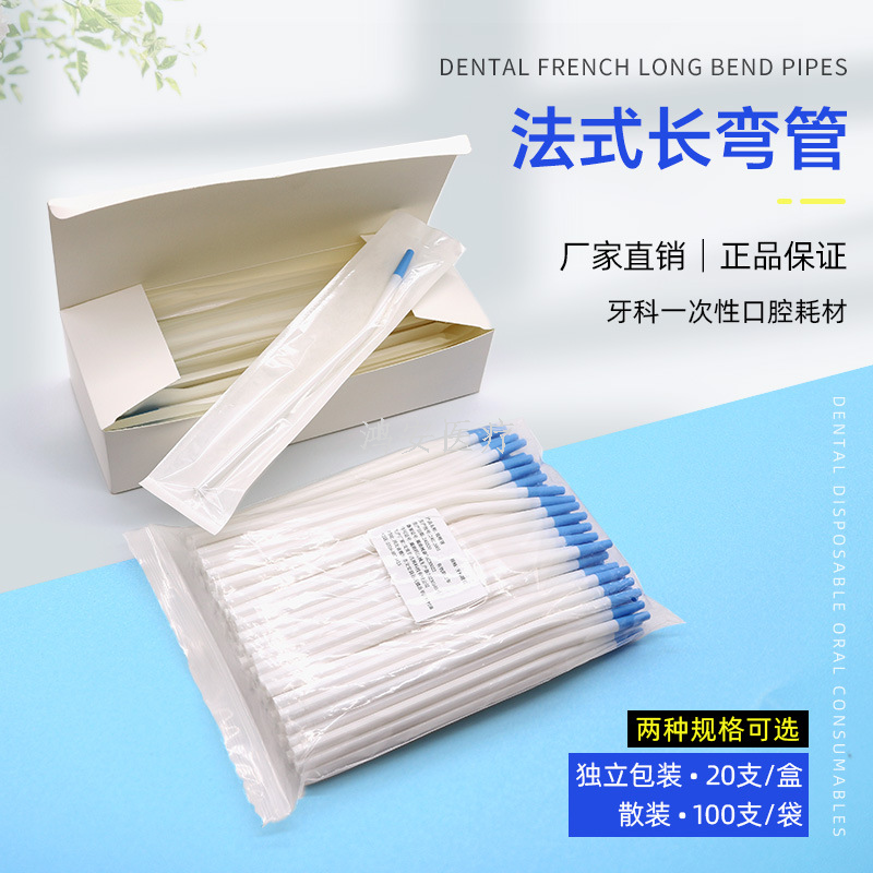 Dental French long elbow oral straw high temperature surgery tube plastic straw strong suction hose 100 pcs/bag