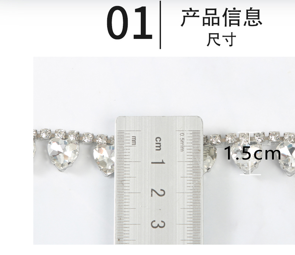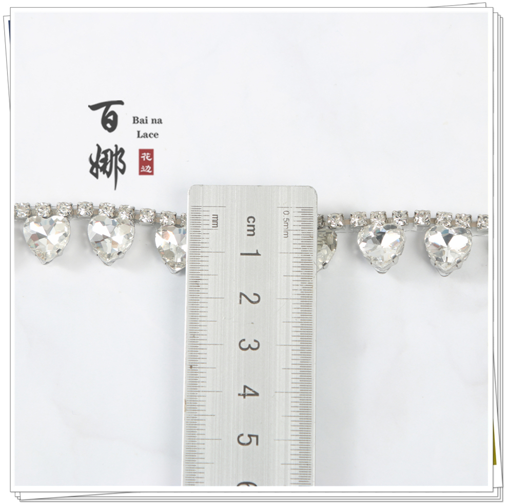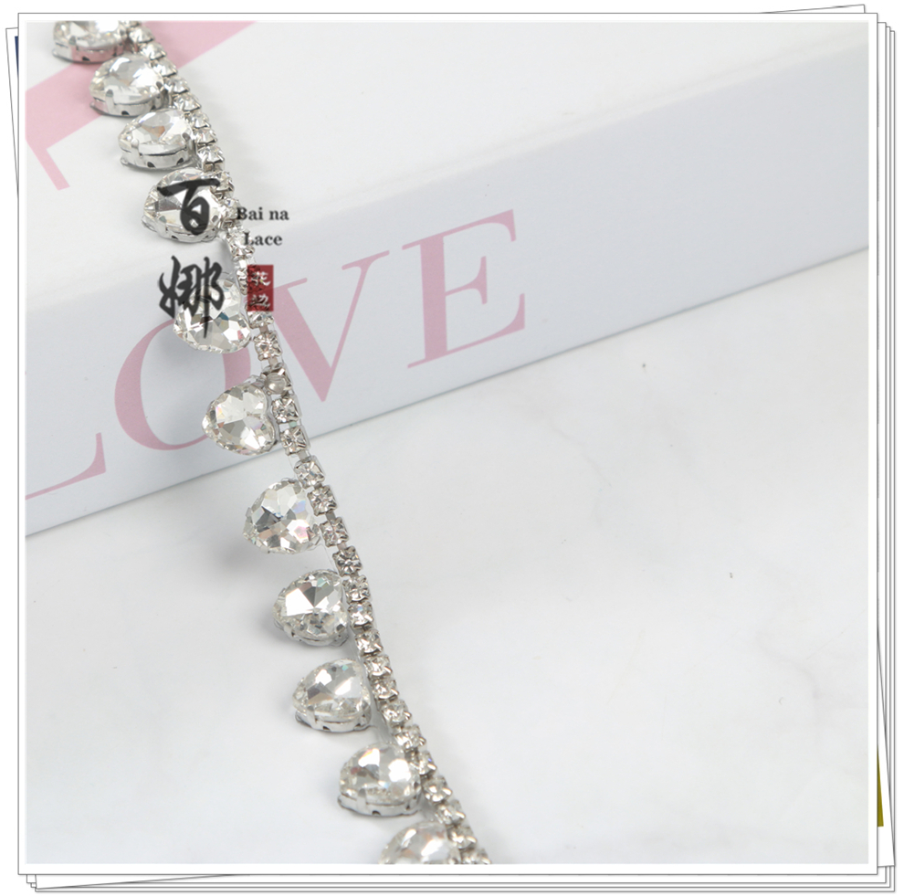 Product Name: 2025 New Model Heart-Shaped Single-Row Water-Aqua Drill Decorative Code Chain DIY Clothing Wedding Headwear Shoes Bag Accessories Wholesaling