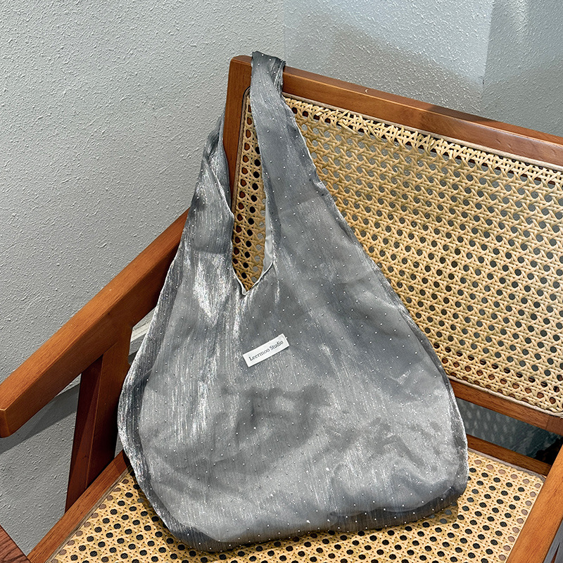 gray shiny crystal shoulder bag