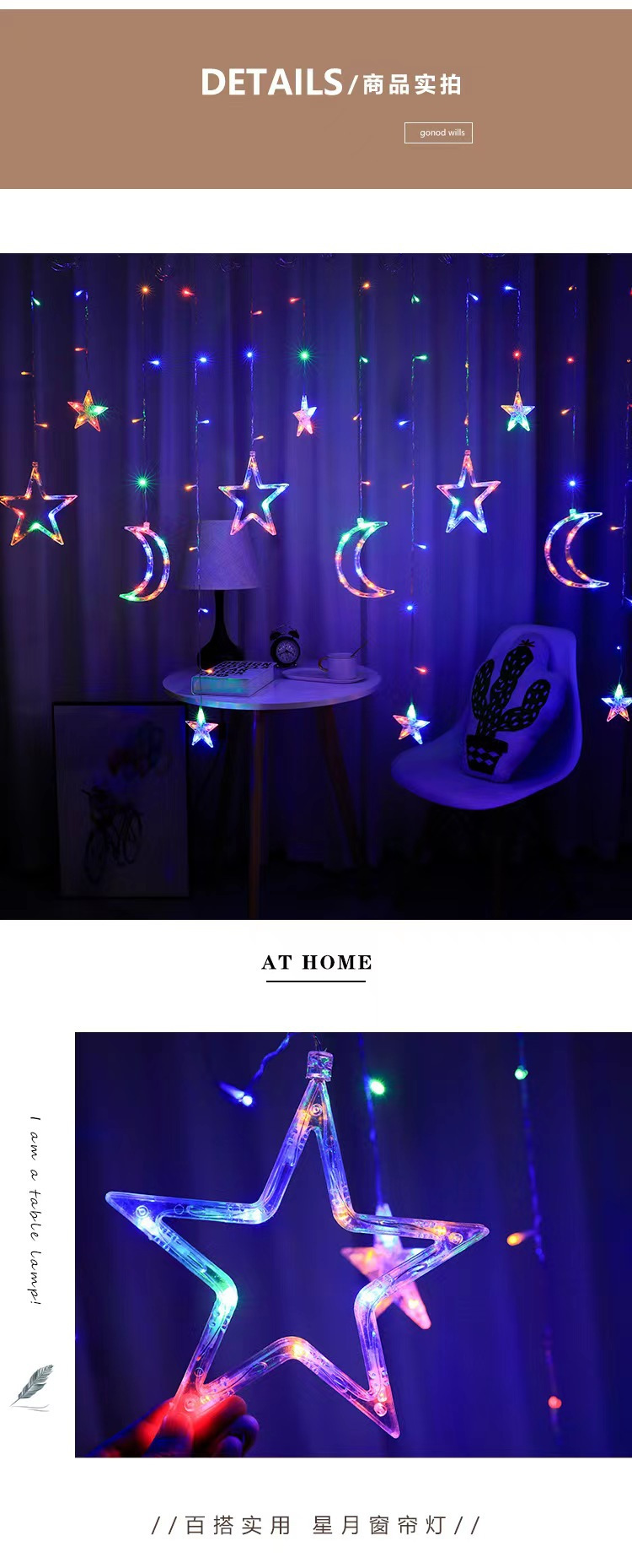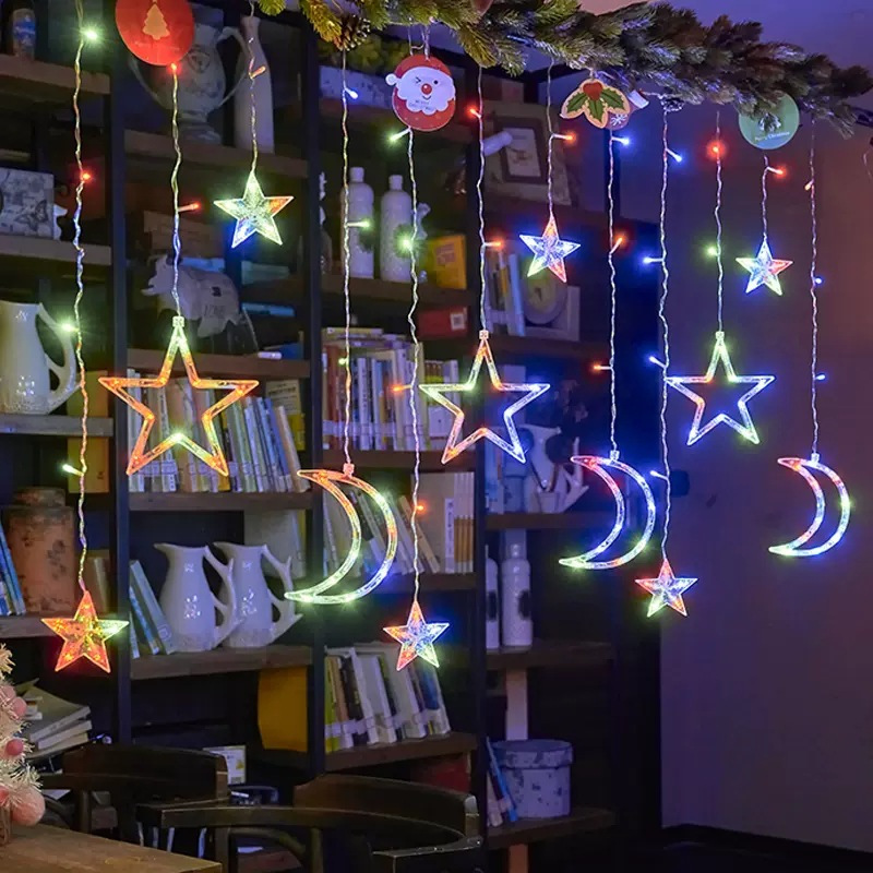 cross-border led star moon star light curtain light courtyard christmas festival ornamental festoon lamp outdoor camping ambience light 中文版