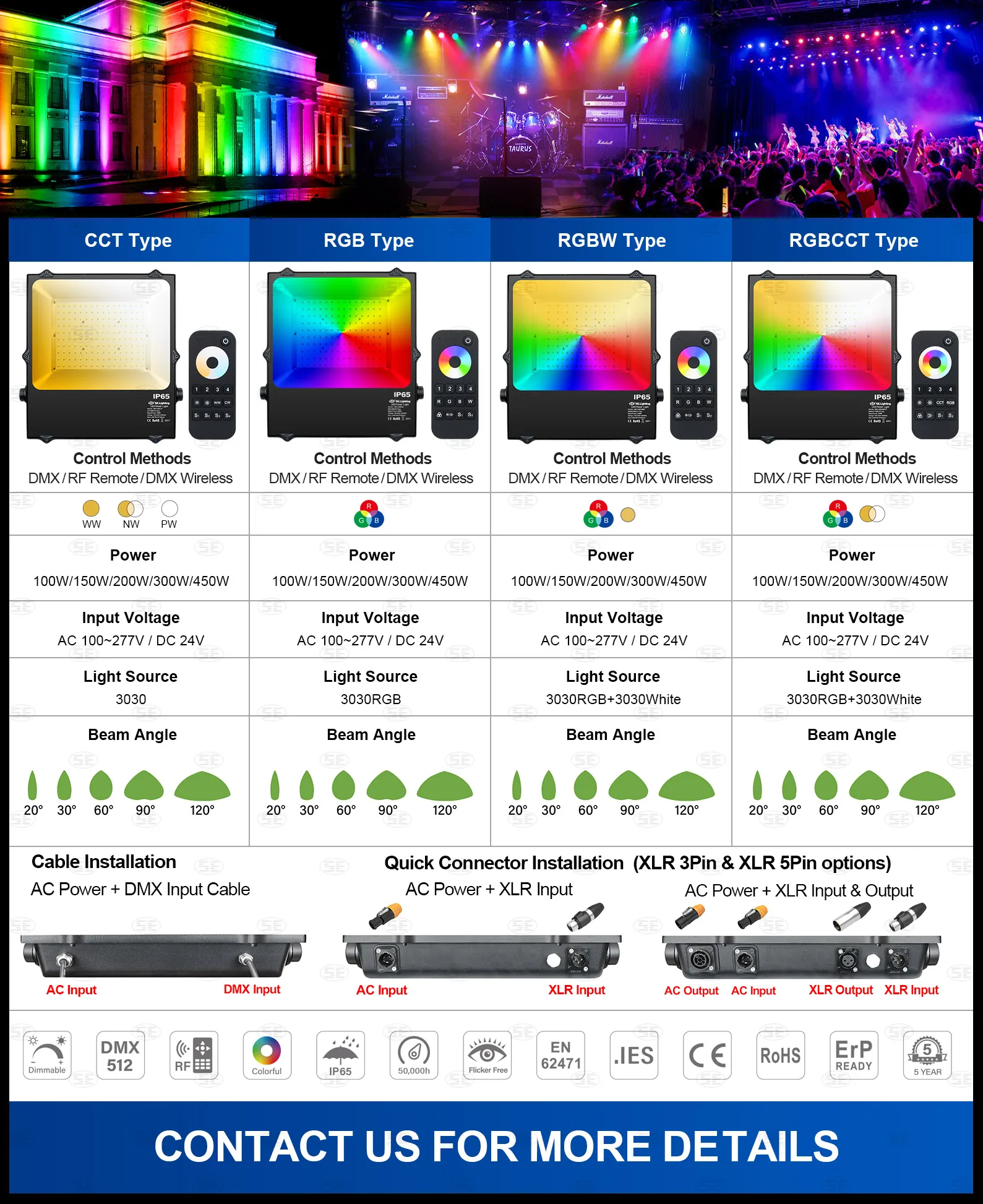 Control Methods | DMX Control / RF Remote Control / DMX Wireless Control | ||||||||