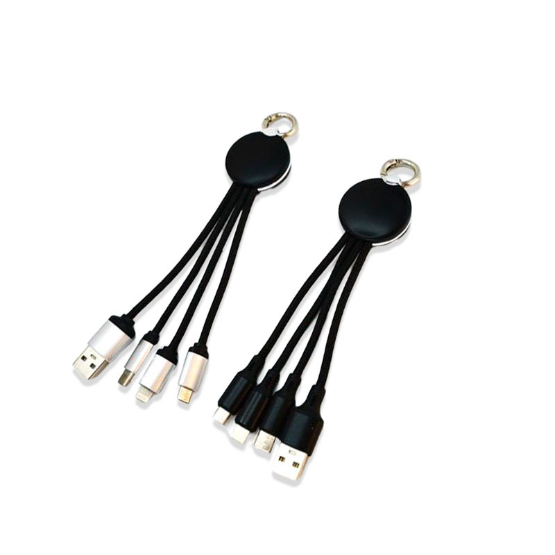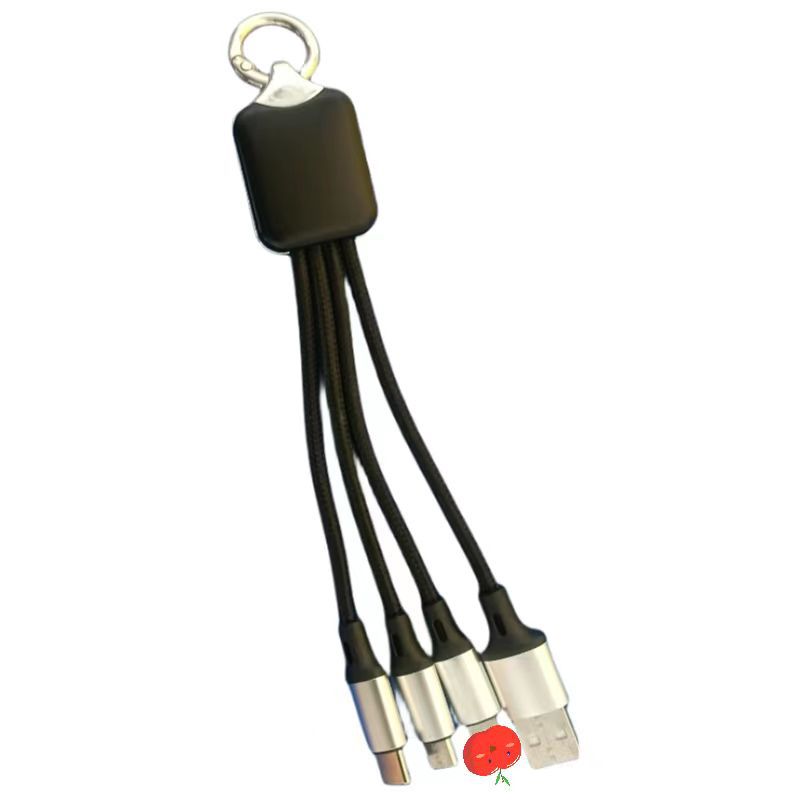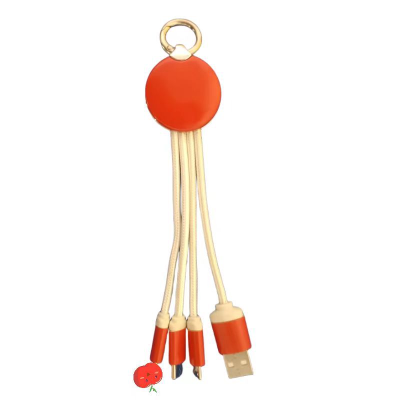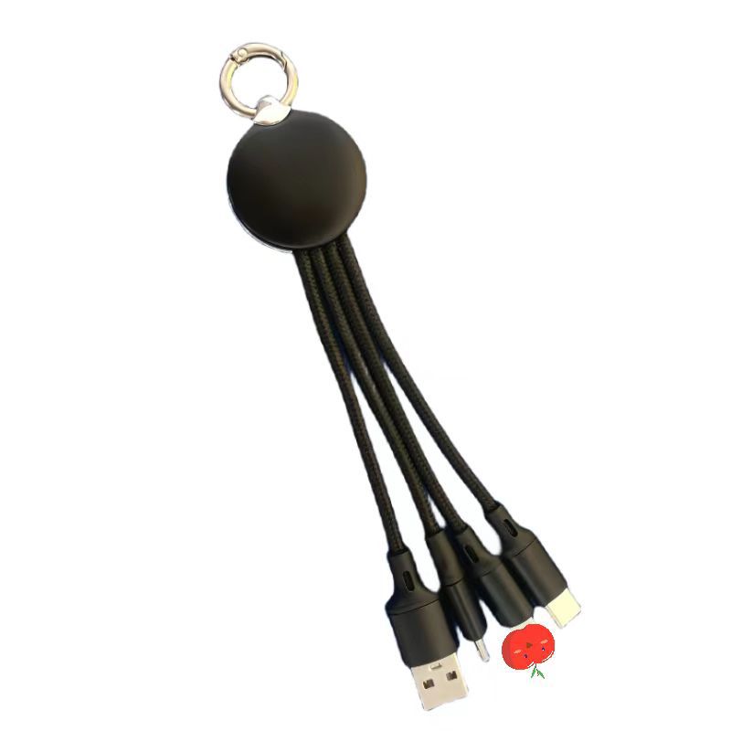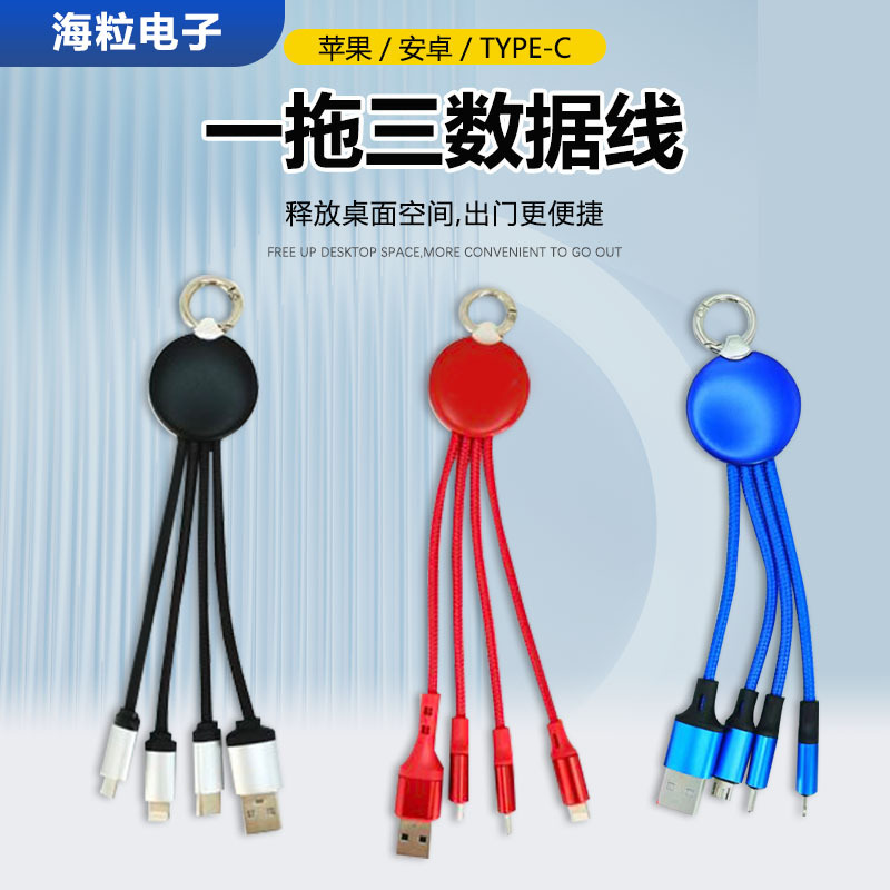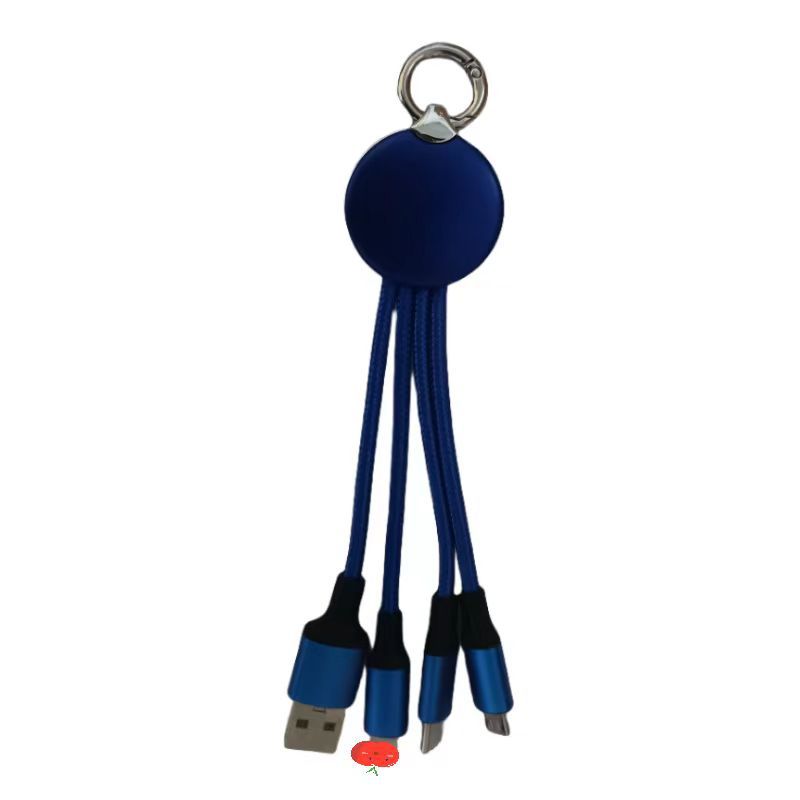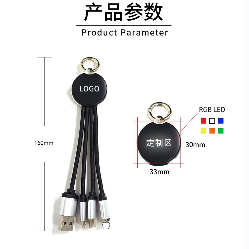 led luminous logo gift data cable three-in-one woven charging cable one-to-three keychain mobile phone data cable 中文版