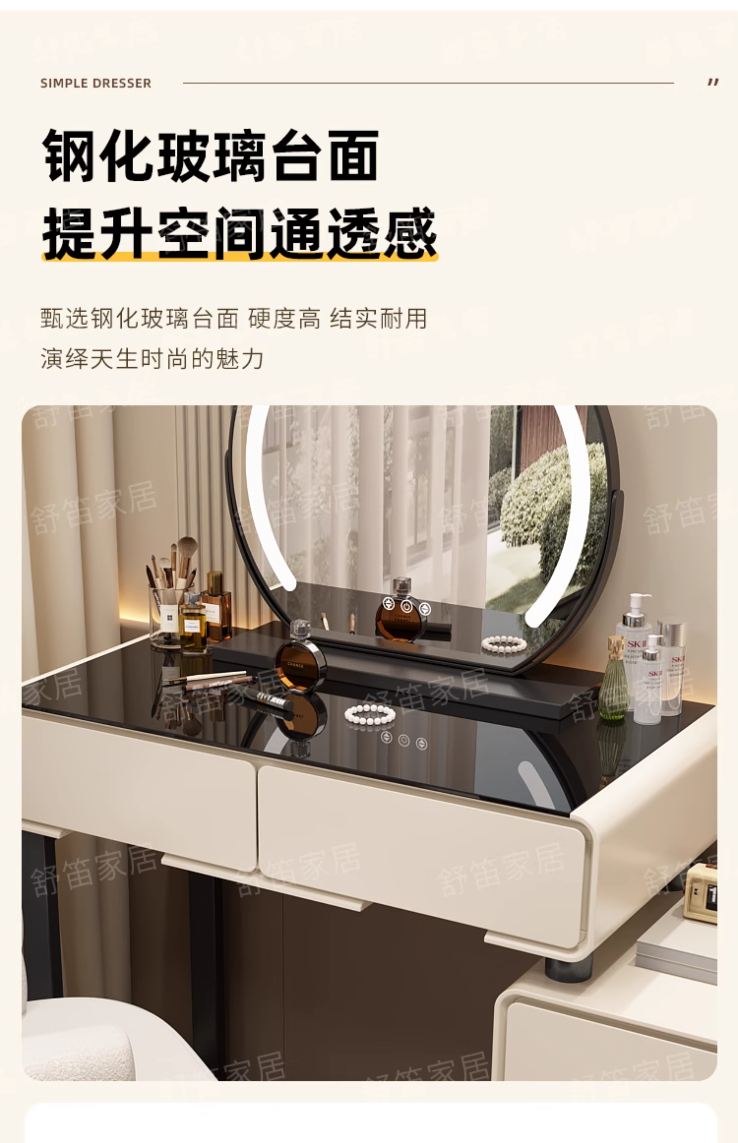 | tempered glass countertop * warm white 50cm table + chest of drawers + (no mirror and no stool) * complete set | ¥409.0 | 200 piece available |