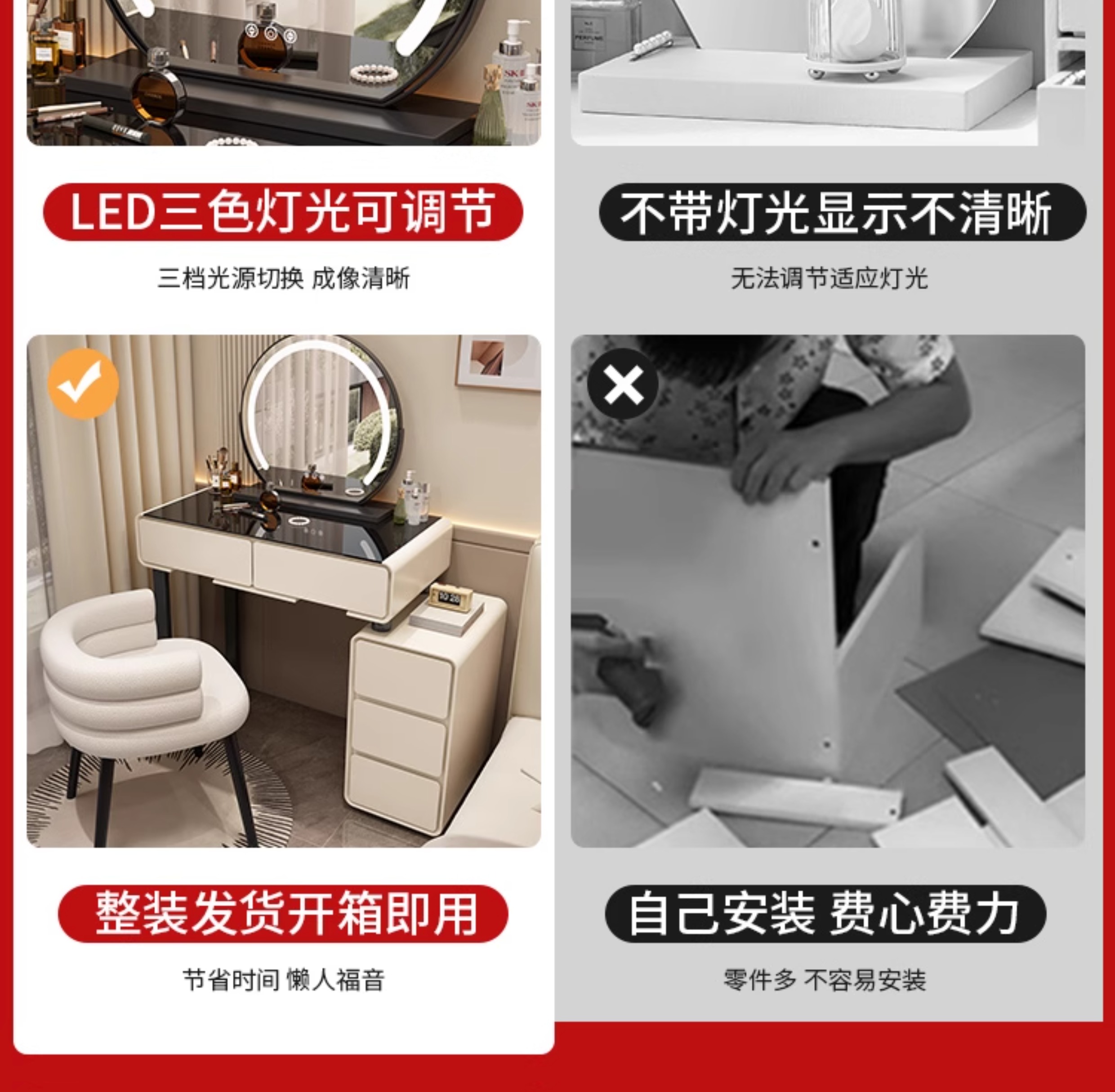 | tempered glass countertop * warm white 50cm table + chest of drawers + smart mirror + square stool * complete set | ¥485.0 | 200 piece available |
