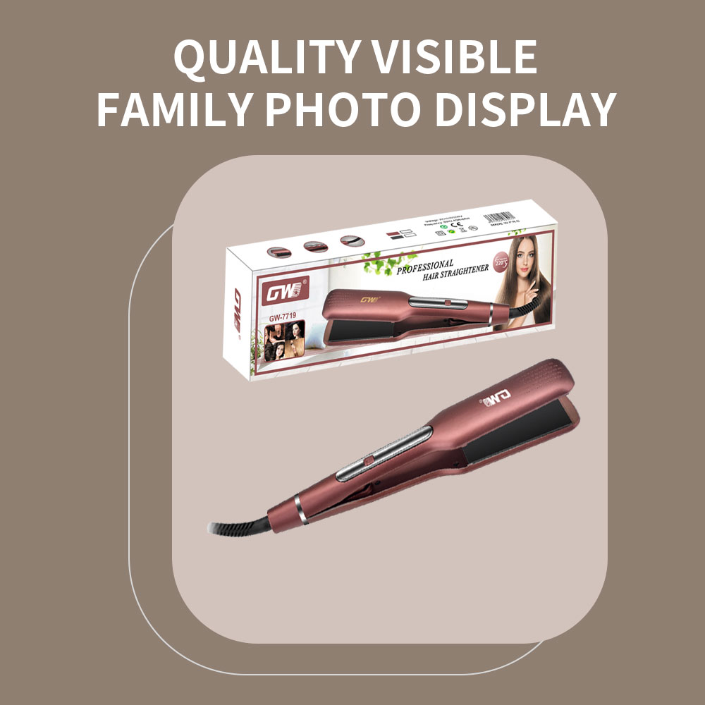 professional plywood hair straightener, unlock the secret of smooth hair with one click! ceramic coating technology is adopted to reduce thermal damage and protect hair health. quickly heat to 200 ℃, set in 30 seconds, long-lasting straight hair. intelligent temperature control design, suitable for all kinds of hair quality, farewell to frizz fork. frequency: 60hz power: 40-60w fahrenheit: 220 voltage: 110v-220v box size: 36*10.5*5.5 box gauge: 43*38*58 gross weight: 18.3 net weight: 16.2 ptc heater display screen