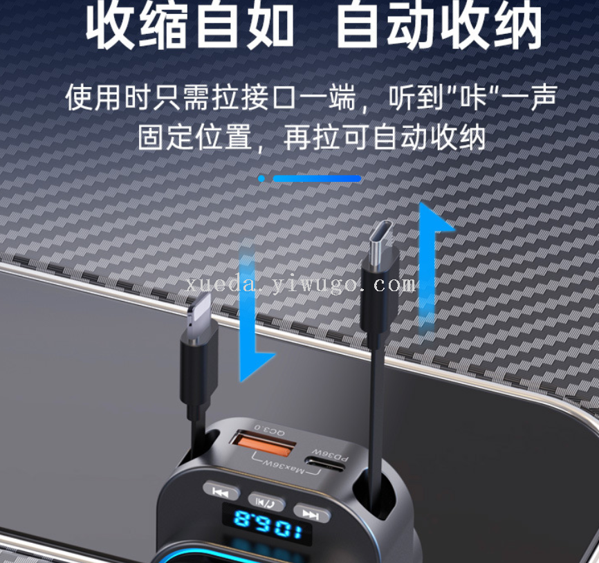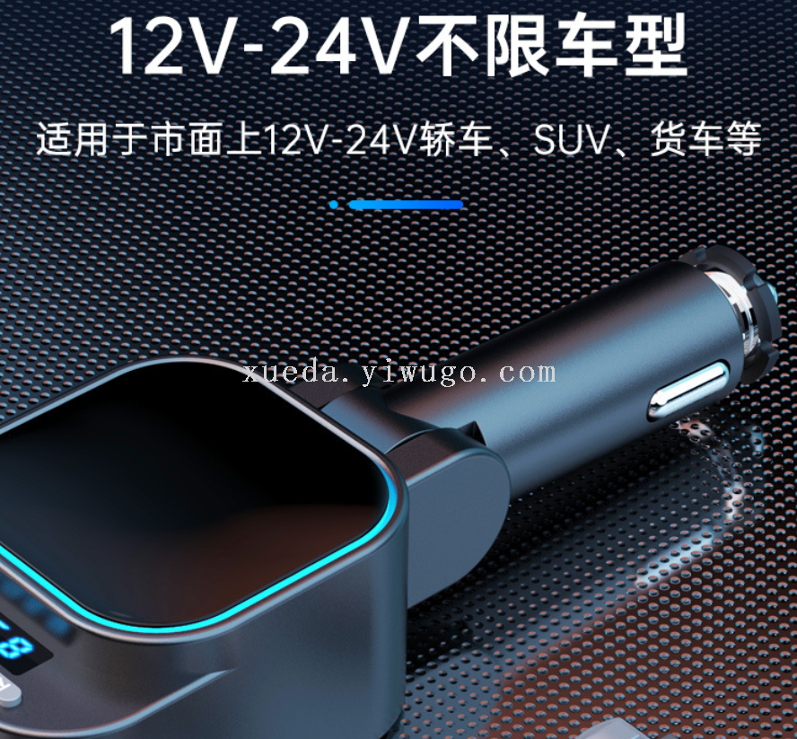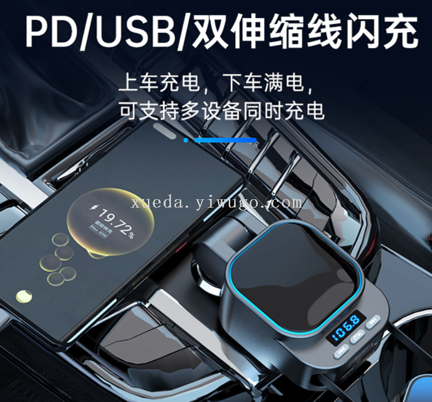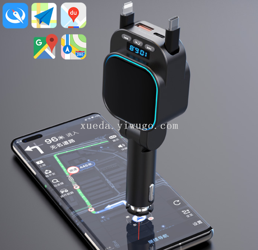 Car Bluetooth MP3 Transmitter Car Charger Super Fast Charge 96W Four in One Flexible Wire Car Charger