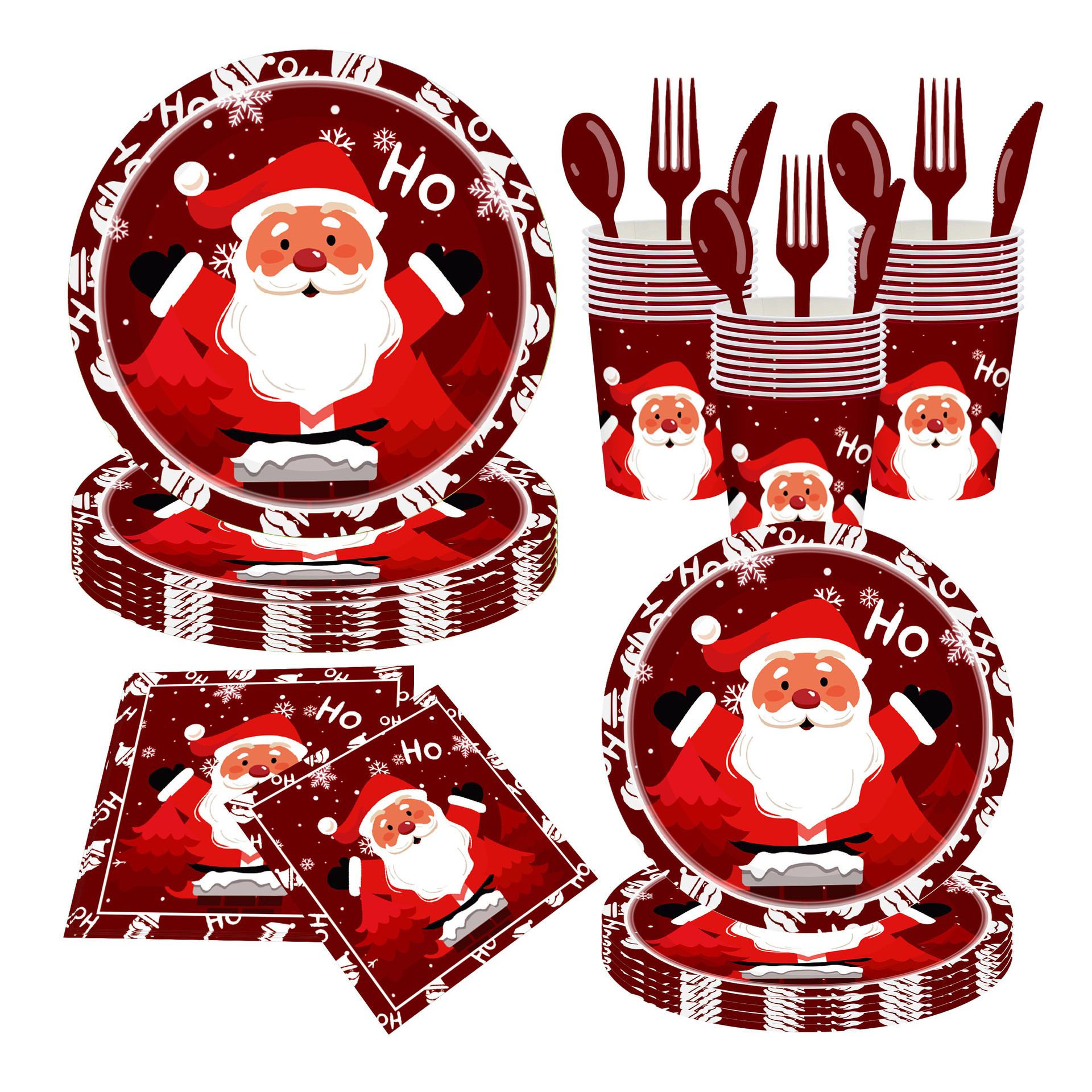 cross-border new arrival christmas cartoon printing christmas theme tableware disposable party raw paper cup tissue paper plate 中文版