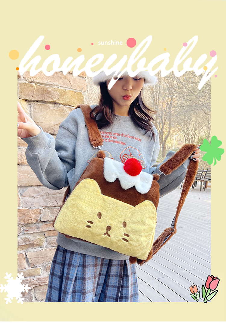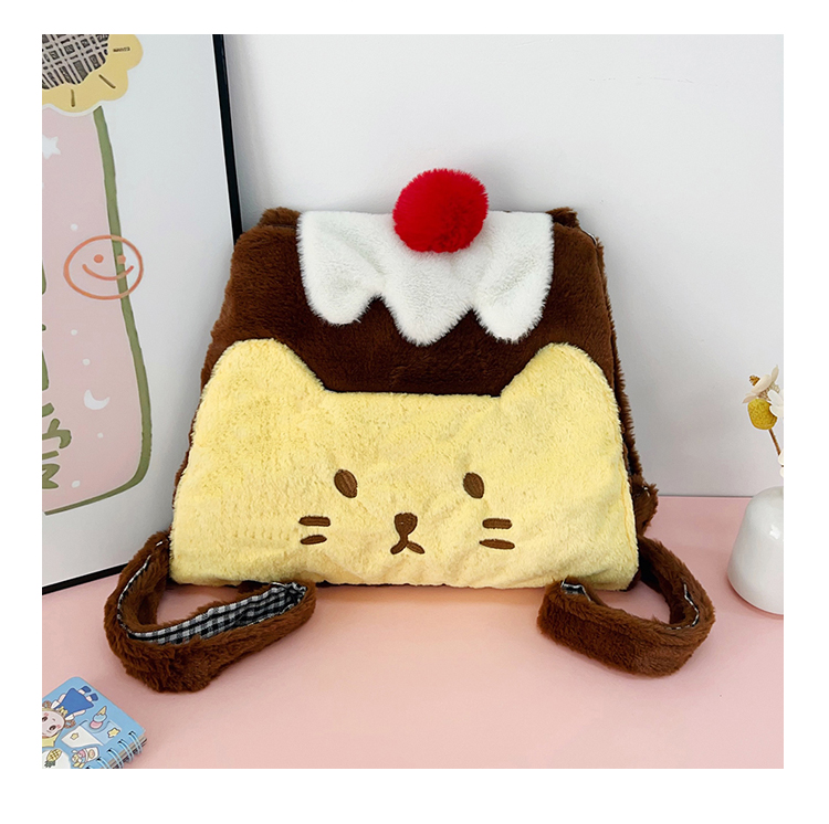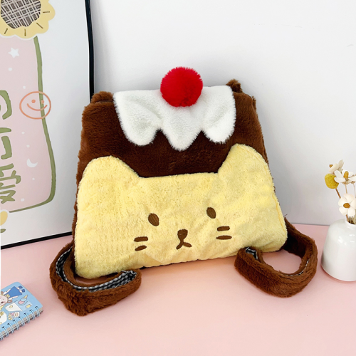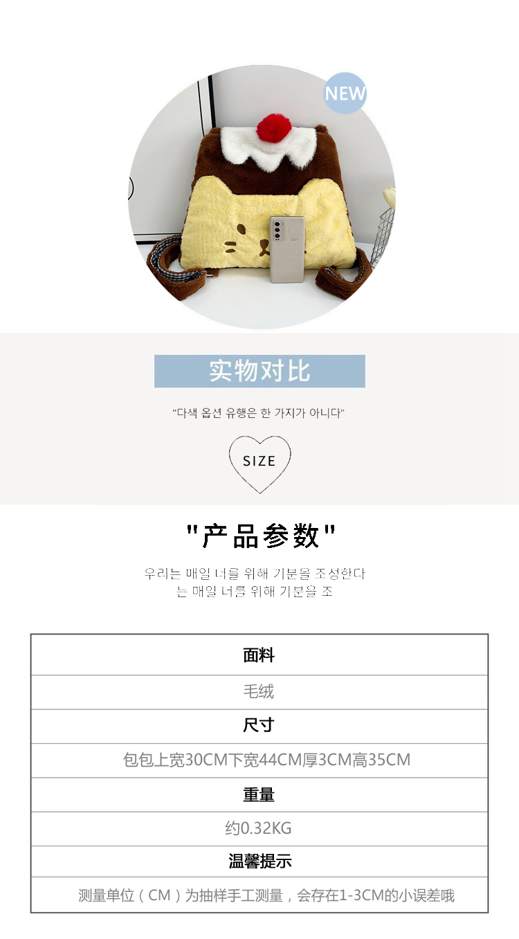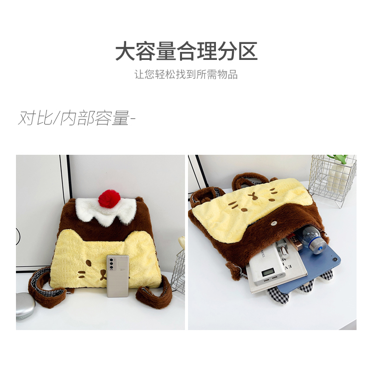 new plush bag plush contrast color pudding little backpack female good-looking large capacity shoulder bag 中文版